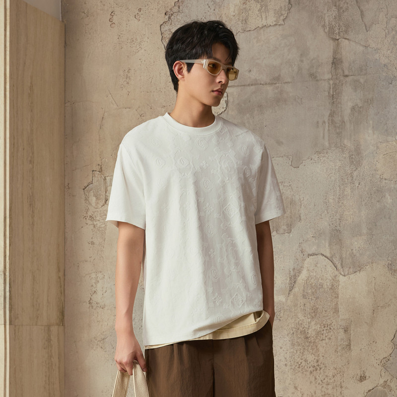 --------------------- 【高定轻奢提花】卡宾肌理感短袖T恤男2025夏季新款潮流圆领上衣 【原售价】359元 【现售价】179元 【推荐理由】