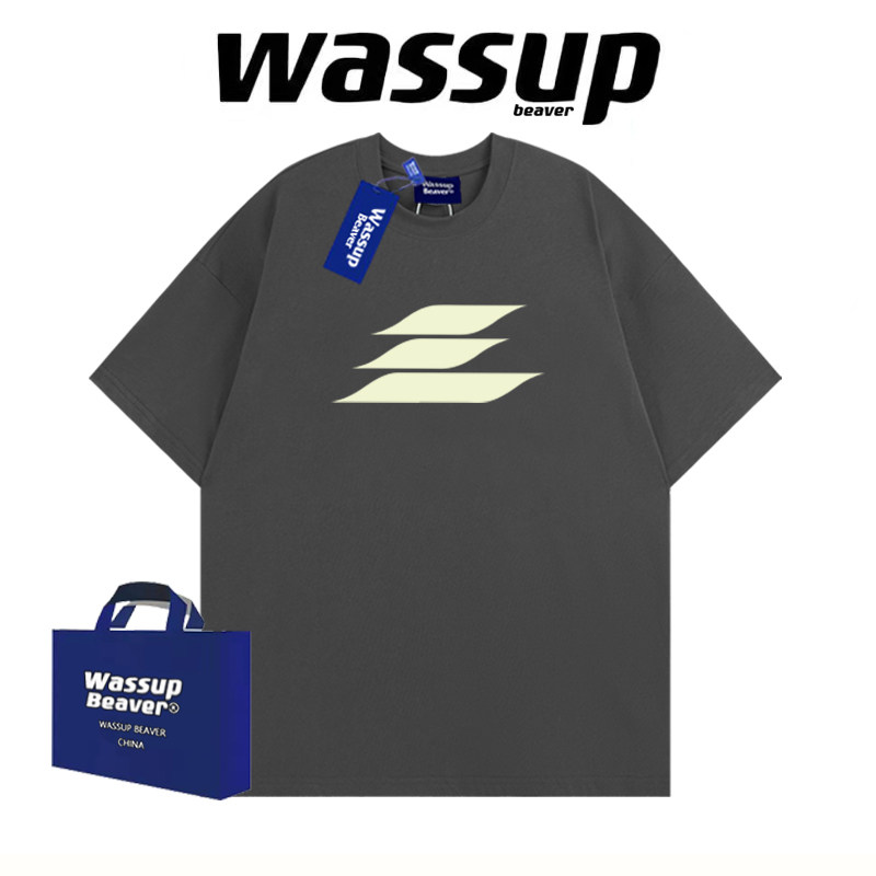 WASSUP BEAVER国潮牌美式复古短袖T恤男女情侣半袖上衣官方旗舰店