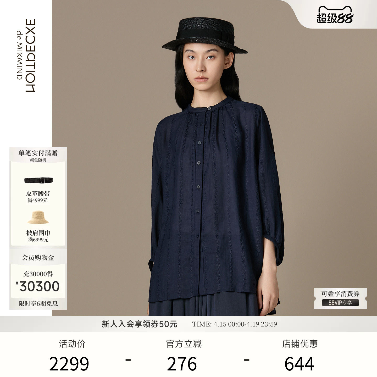 --------------------- EXCEPTION例外女装苎麻混纺复古绣花时尚通勤上衣圆领七分袖衬衫 【原售价】2299元 【现售价】1379元 【推荐理由】