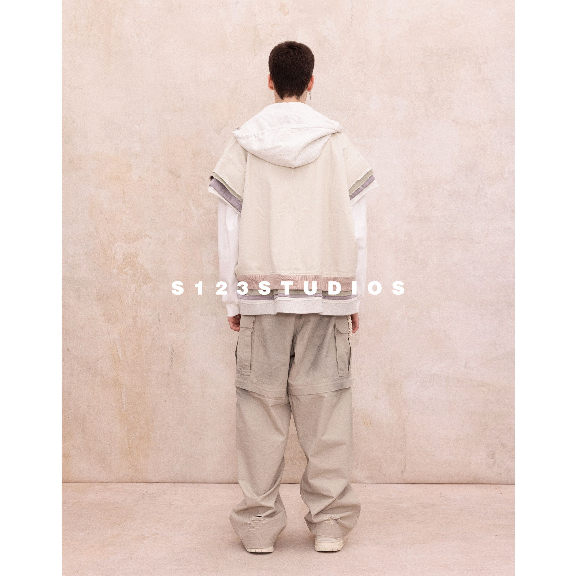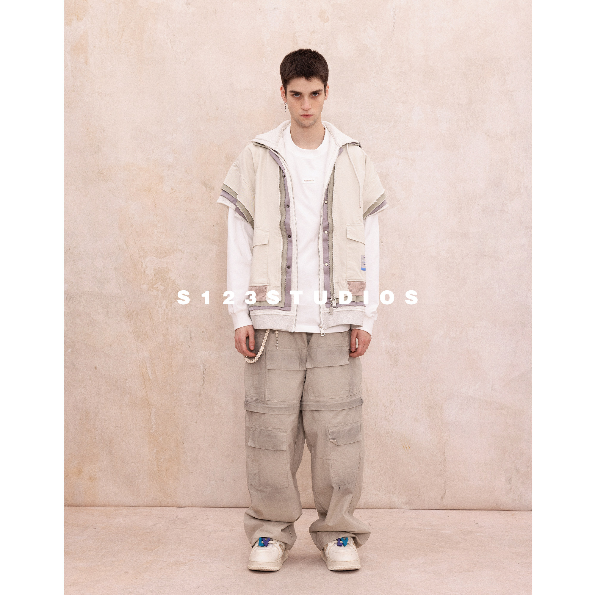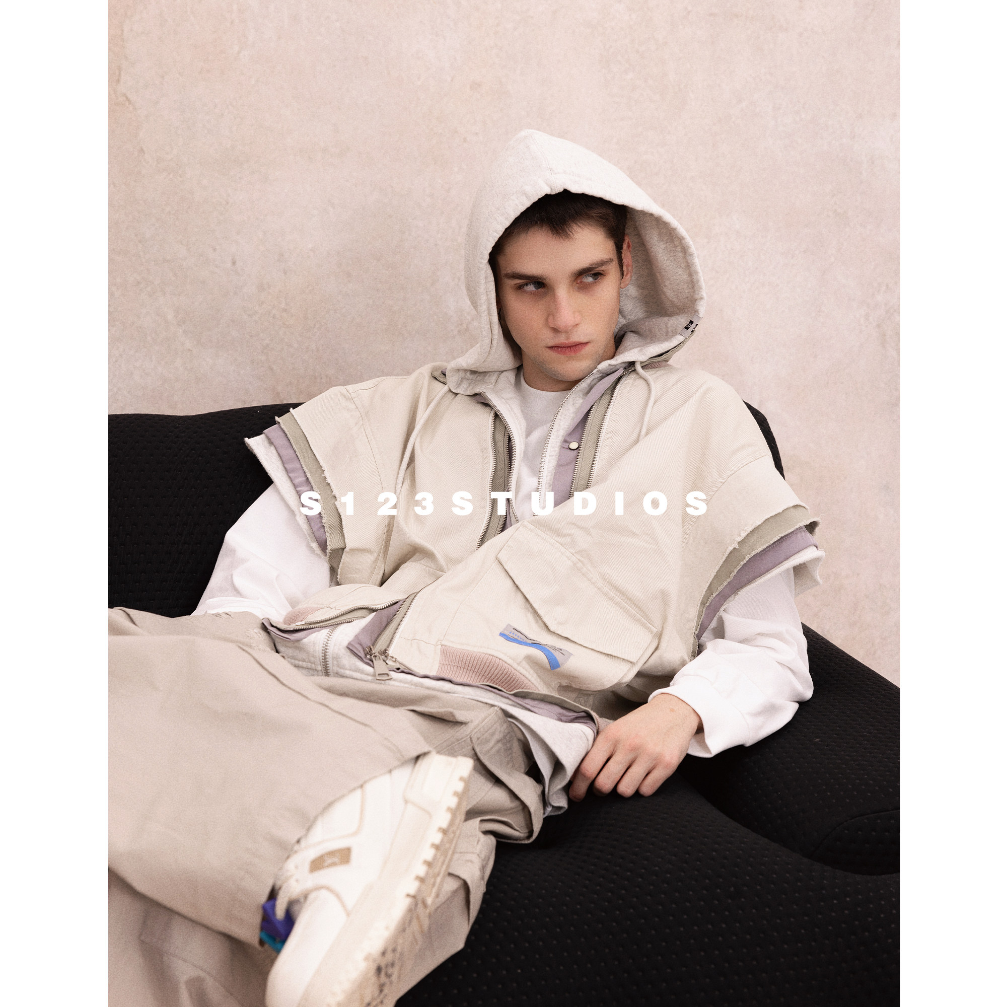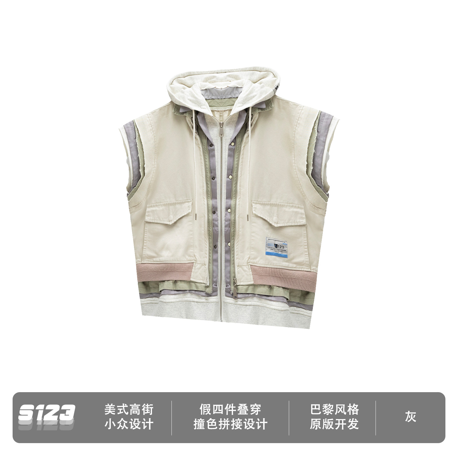 淘宝S123【素面层韵】巴黎风格假四件外套机能风工装落肩马甲男