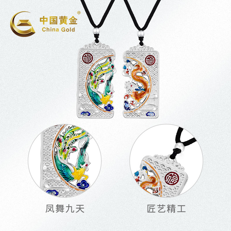 --------------------- 中国黄金龙凤牌吊坠珐琅龙凤999足银吊坠纯银情侣吊坠女神节 【原售价】1235元 【现售价】540元 【推荐理由】