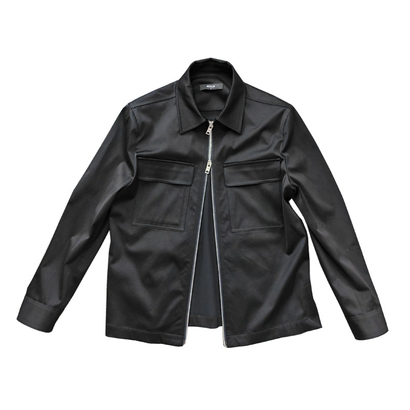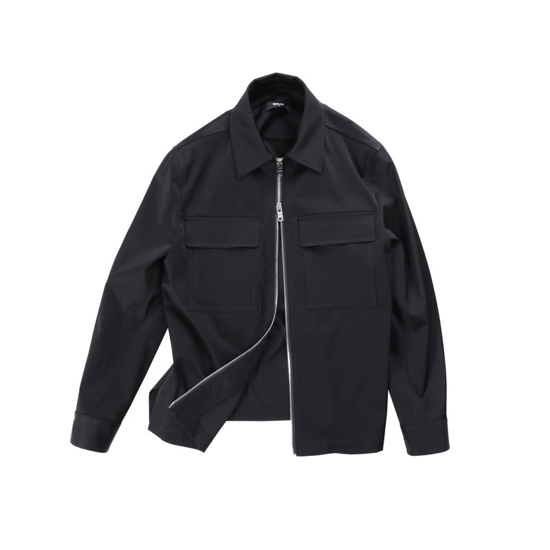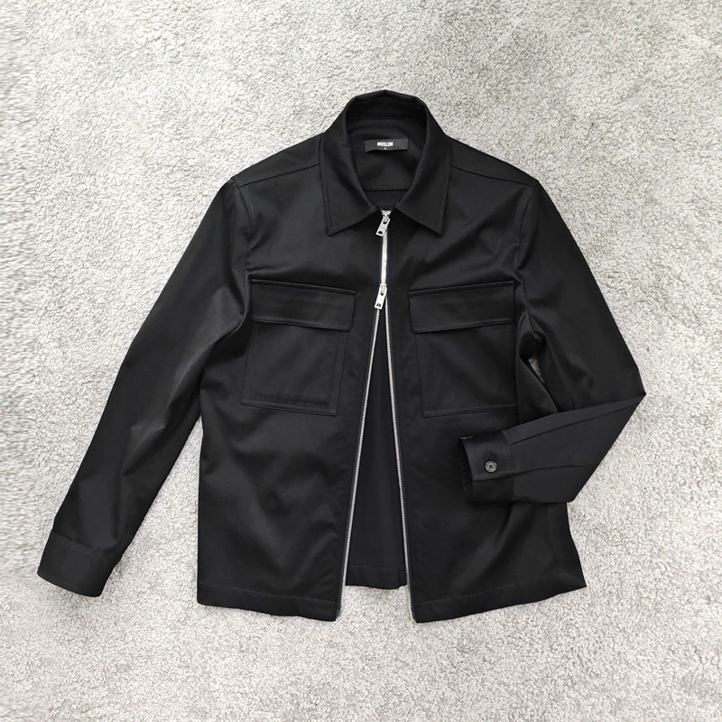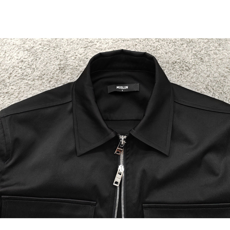 MUSLUN秋新品 黑色进口三醋酸混纺棉感抗皱 薄夹克 拉链外套