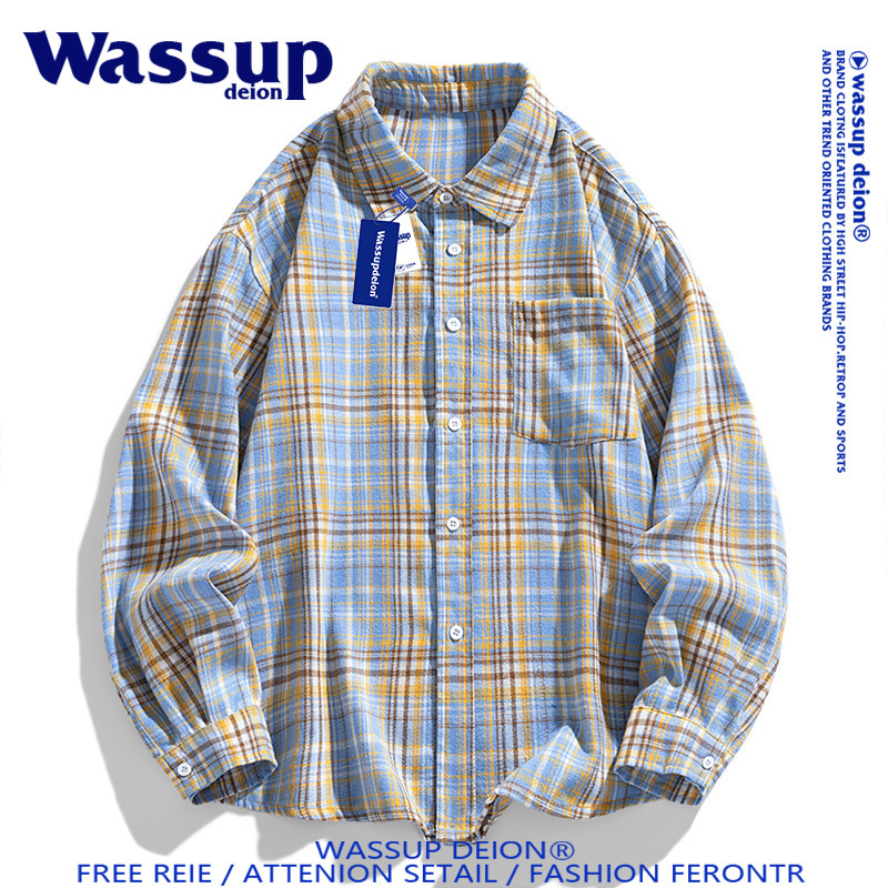 wassupdeion潮牌春秋新款格子衬衫长袖男休闲宽松复古翻领衬衣女