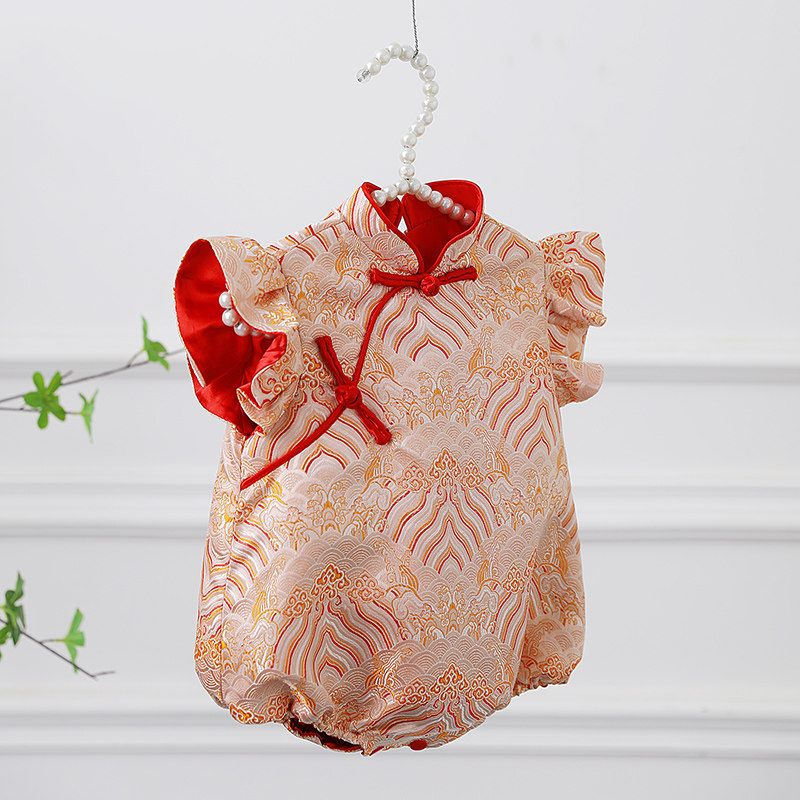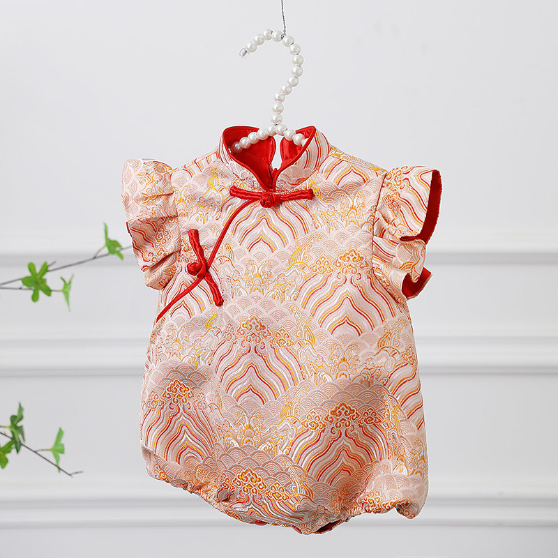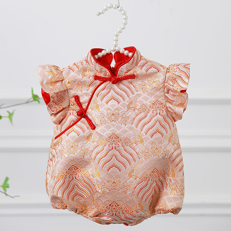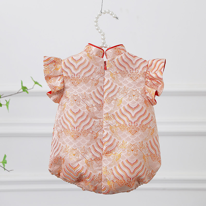 一周岁女宝宝礼服百天中式婴儿旗袍抓周宴儿童满月包屁服唐装夏天