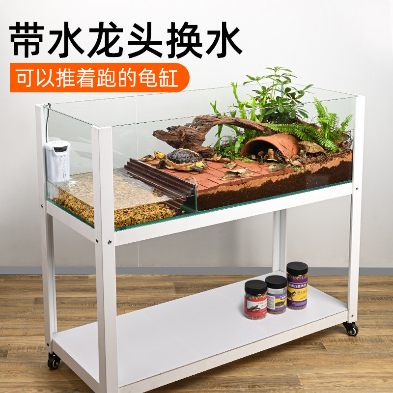 黄缘半水龟玻璃缸铝合金支架可移动乌龟生态造景专用水陆缸特大号