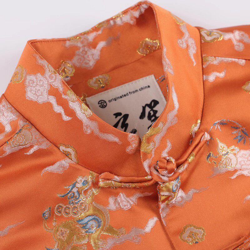 中国风男装新中式复古风民族风麒麟提花立领盘扣唐装外套上衣男