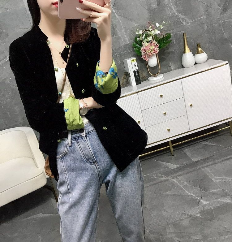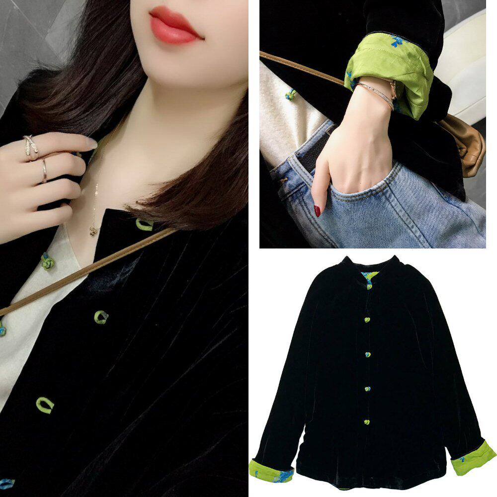 --------------------- 国潮风设计感 真丝丝绒衬衫 新中式撞色衬衣立领上衣春秋女装外套 【原售价】358元 【现售价】315元 【推荐理由】