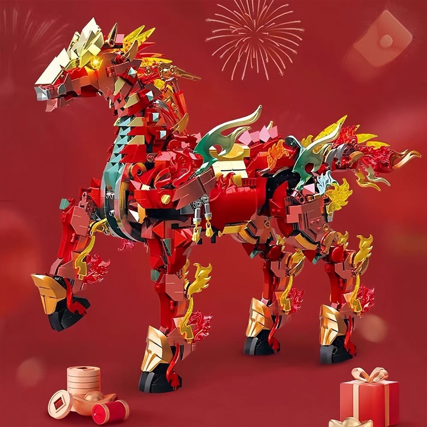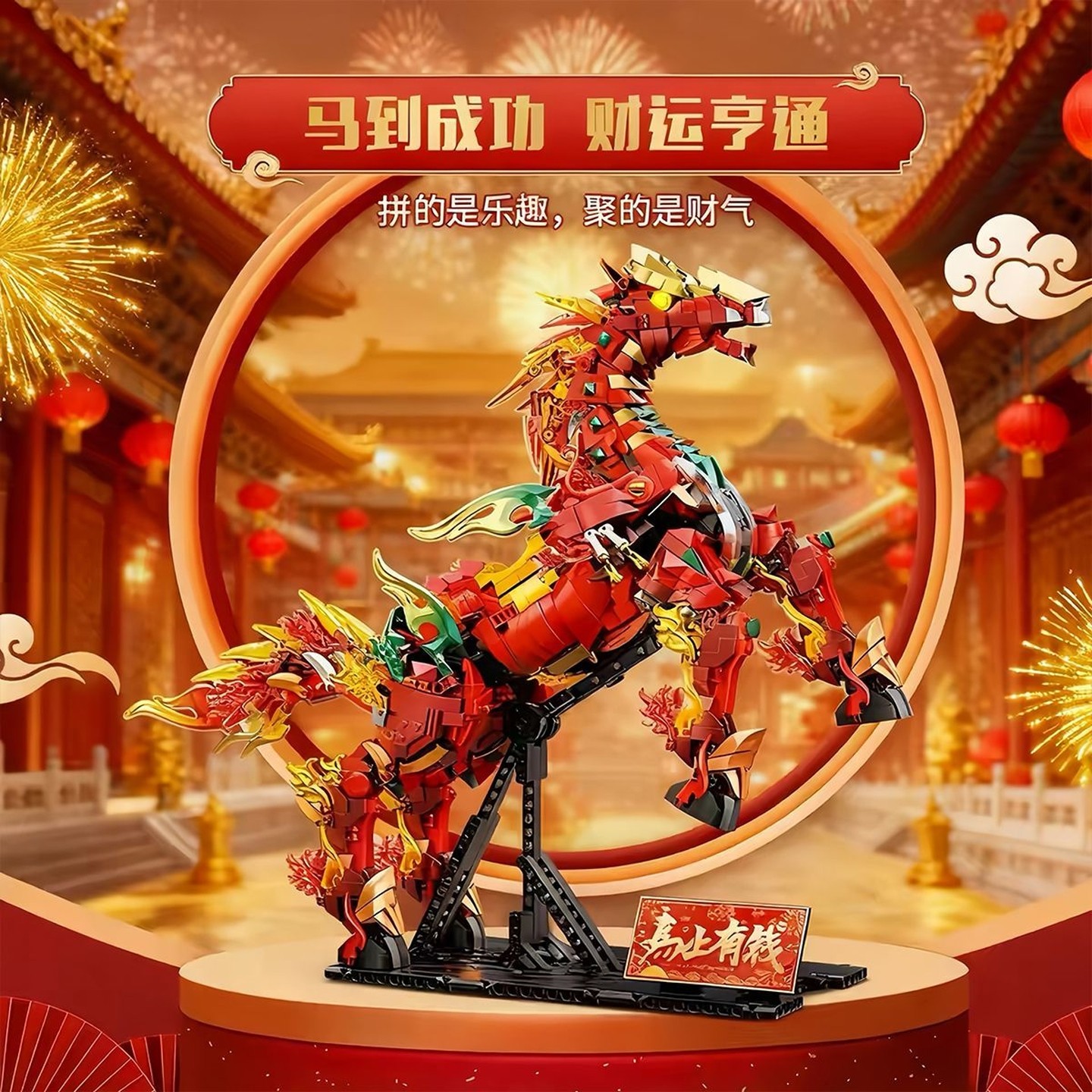 马年限定赤兔马积木2026新款高难度拼装模型新春礼物男孩益智玩具