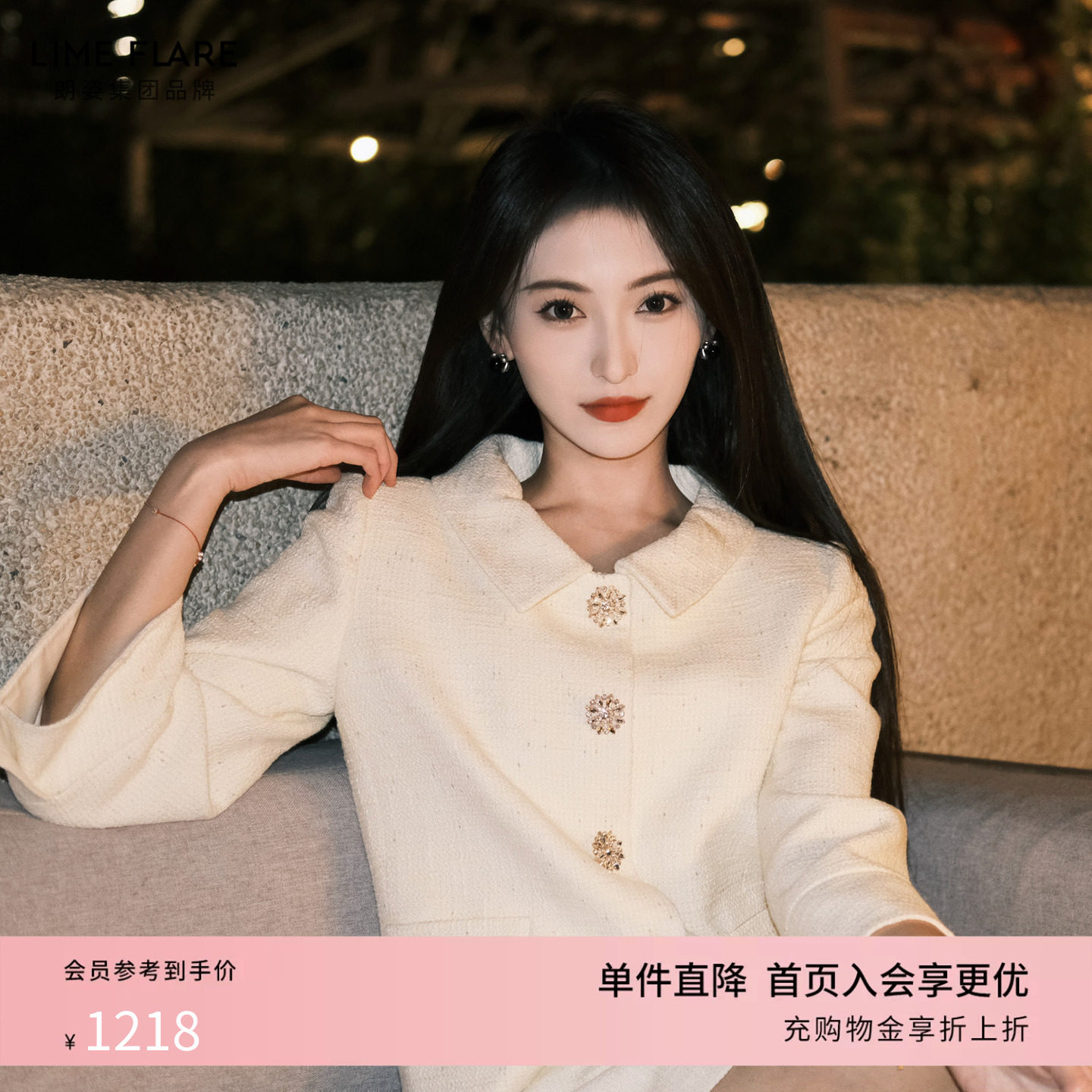 --------------------- 【祝绪丹同款】朗姿莱茵福莱尔钻扣粗花呢套装裙气质优雅香风外套 【原售价】2080元 【现售价】696元 【推荐理由】