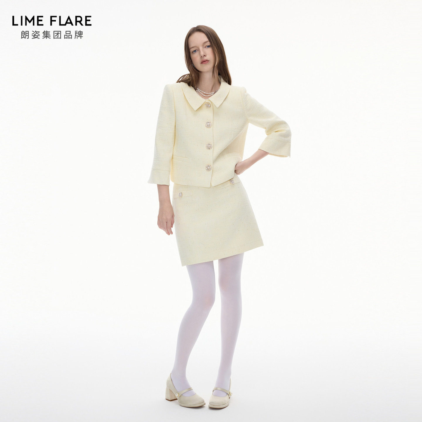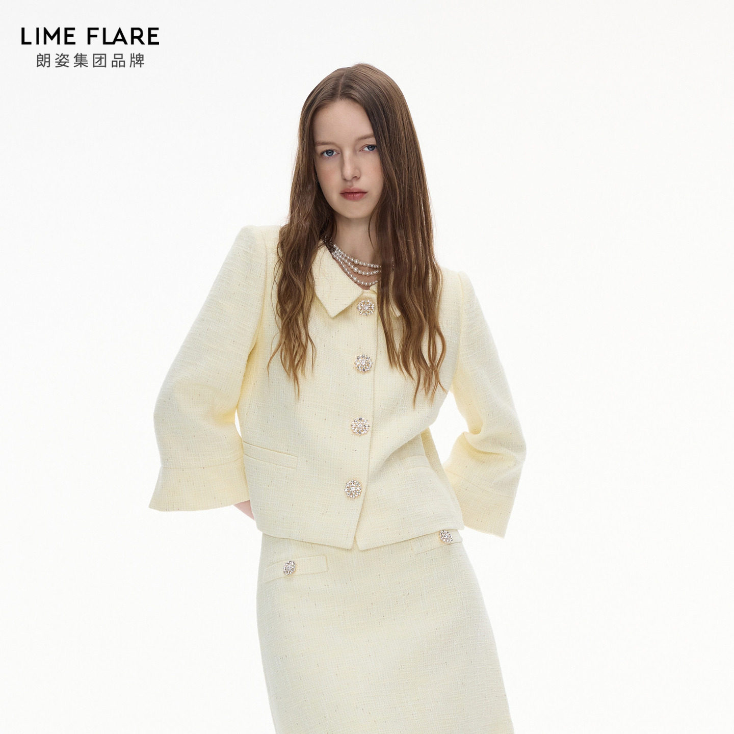 【祝绪丹同款】朗姿莱茵福莱尔钻扣粗花呢套装裙气质优雅香风外套