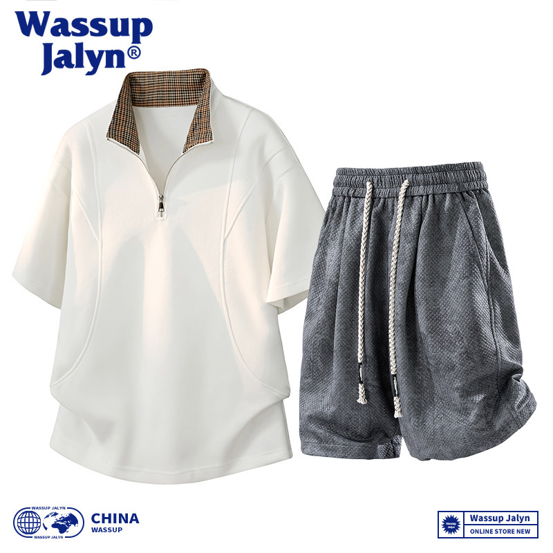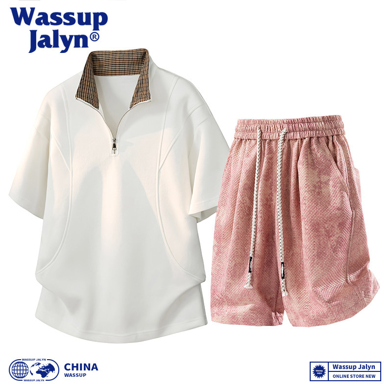 WASSUP JALYN美式短袖短裤套装男款夏季潮痞帅宽松休闲运动套装男