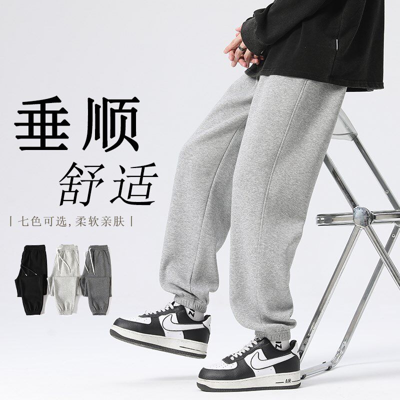裤子男春秋季束脚运动裤棉男生宽松百搭卫裤潮流灰色休闲裤学生长