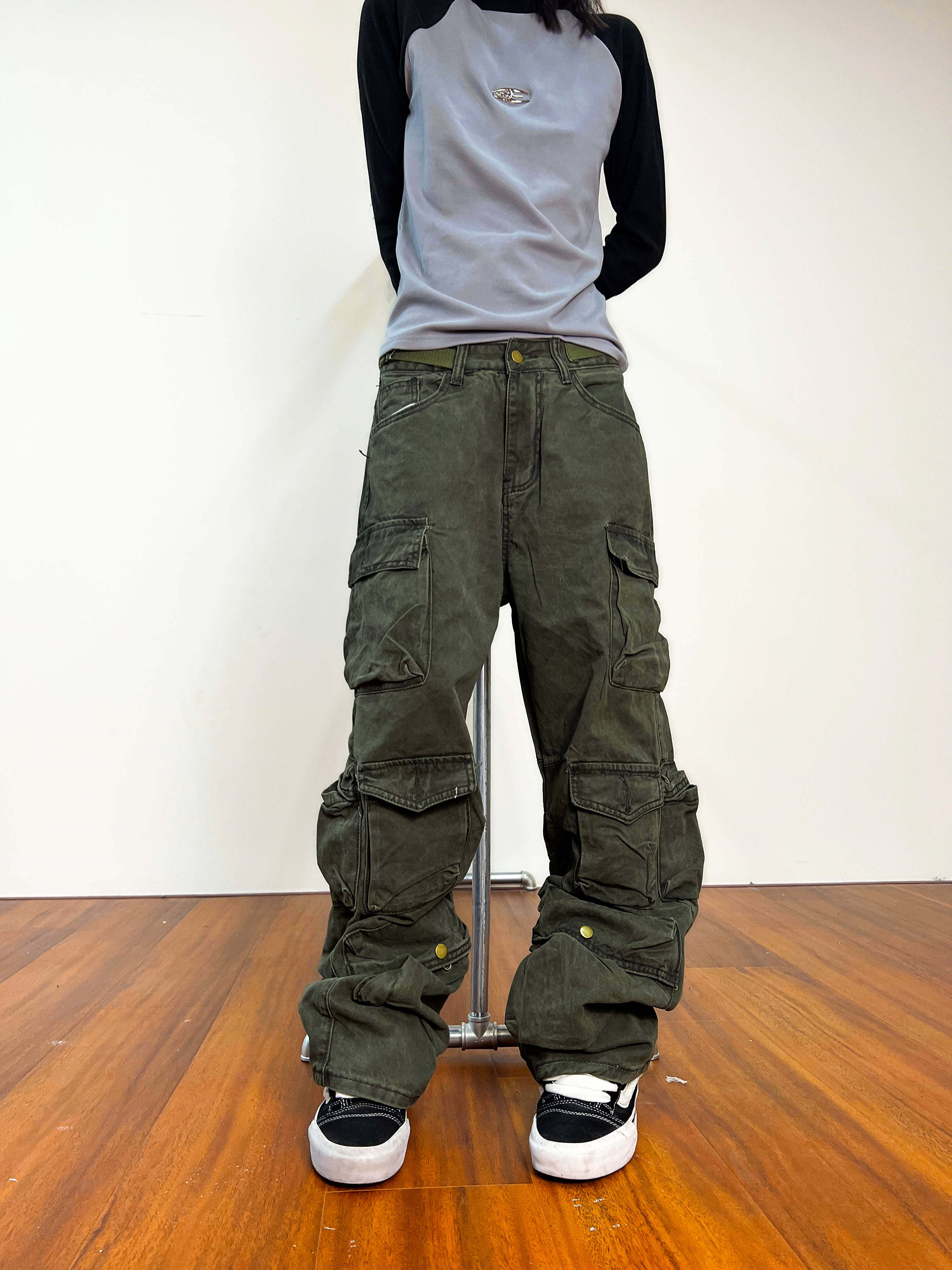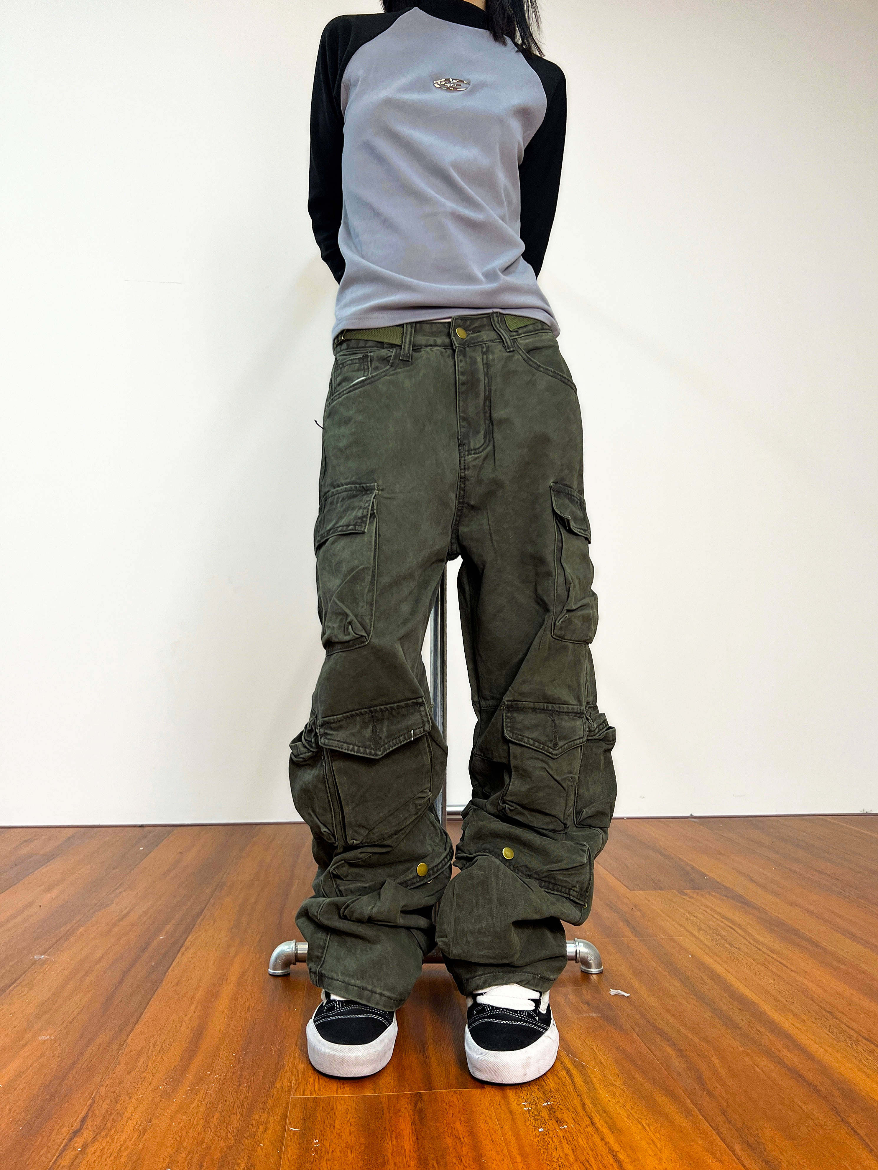 F383 2026AW国潮原创美式复古多口袋休闲宽松显瘦工装直筒裤男女