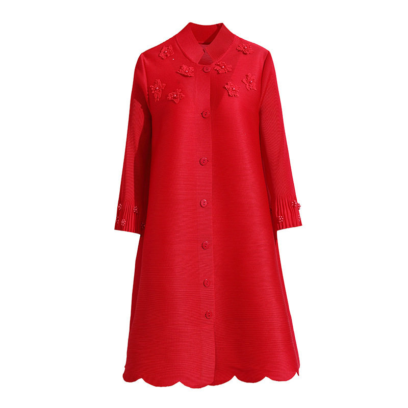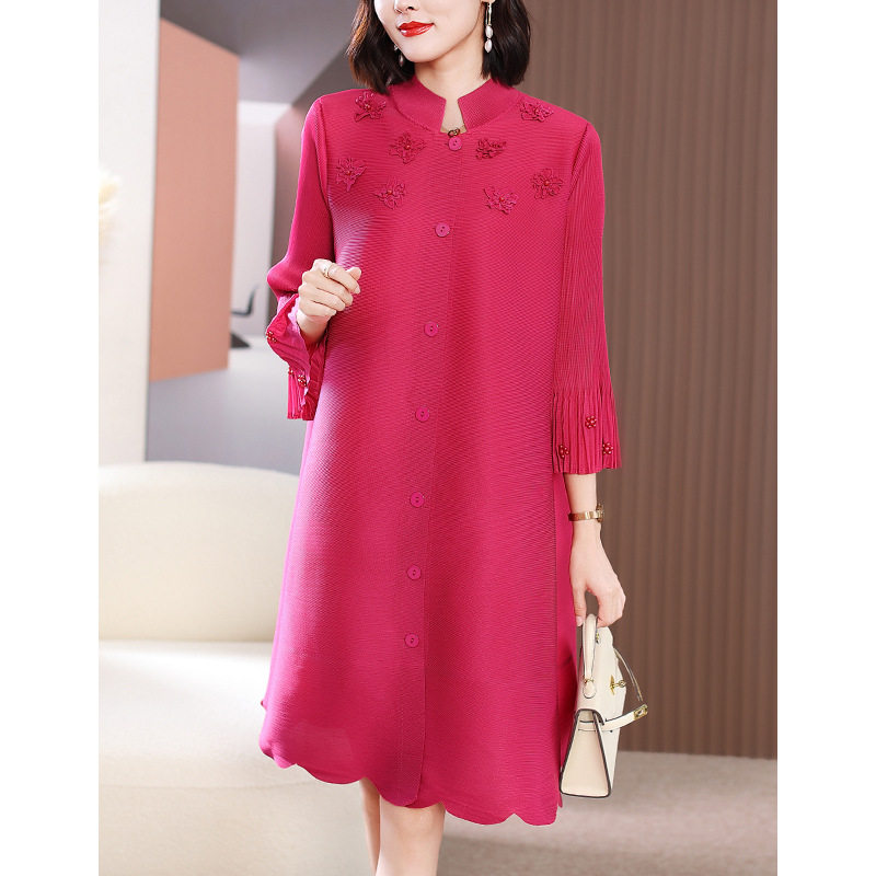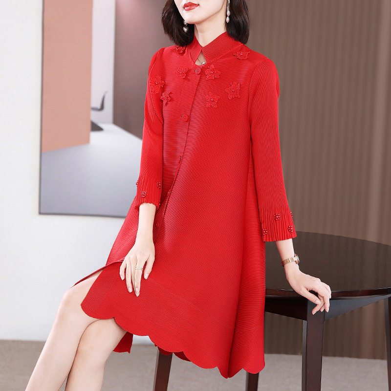 淘宝早春优雅时尚中年妈妈装褶皱连衣裙减龄显瘦大码中长款开衫裙子女