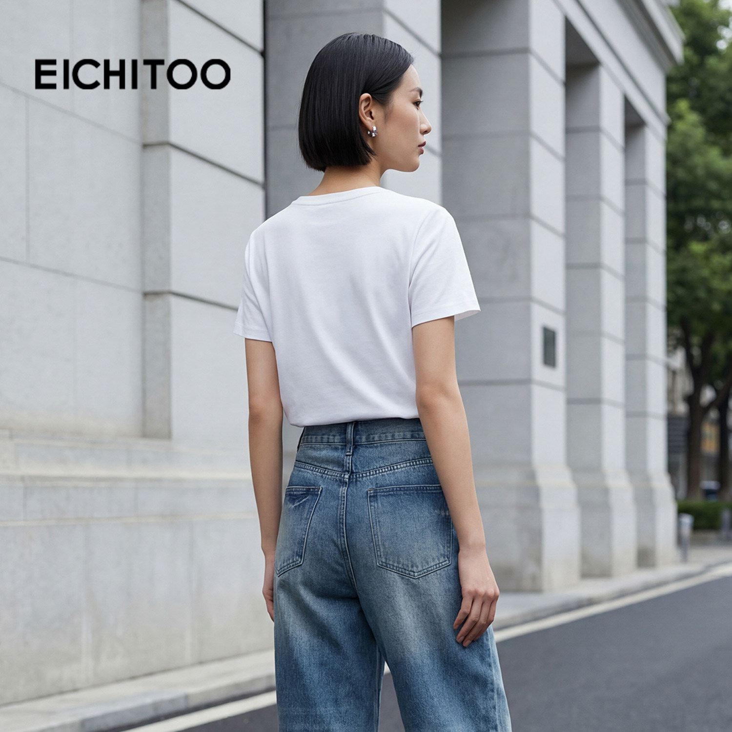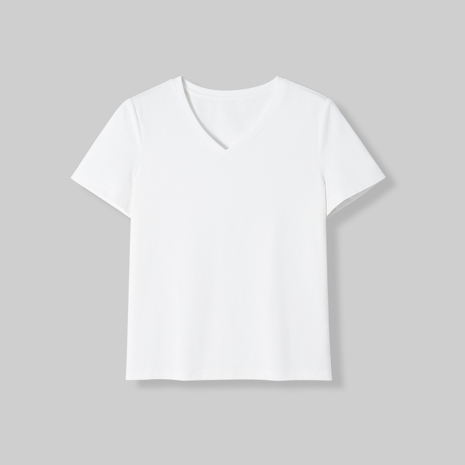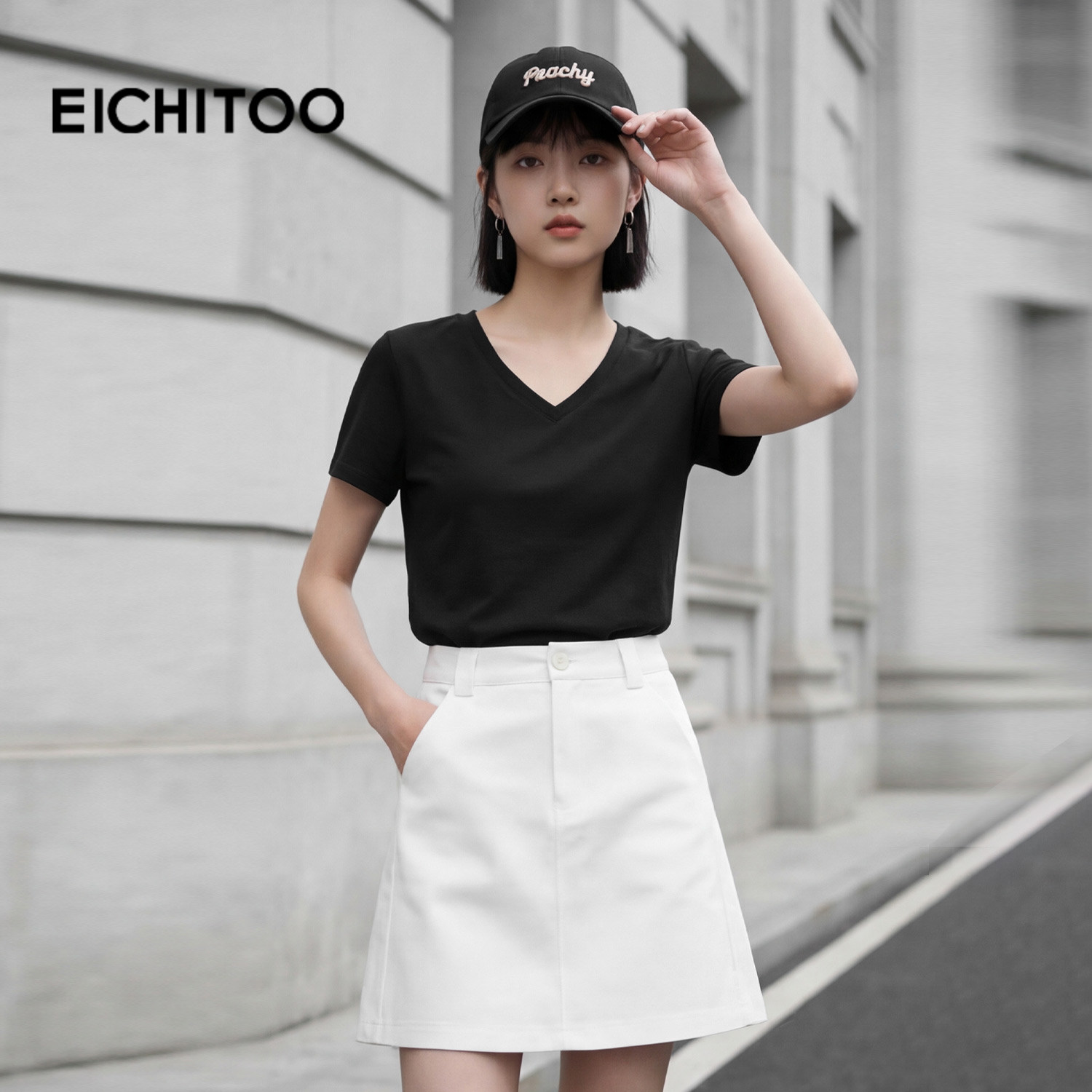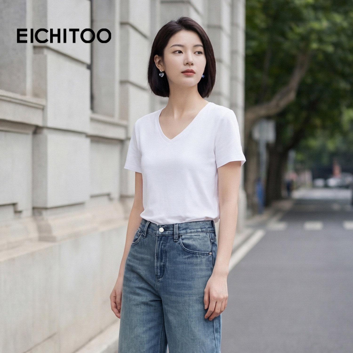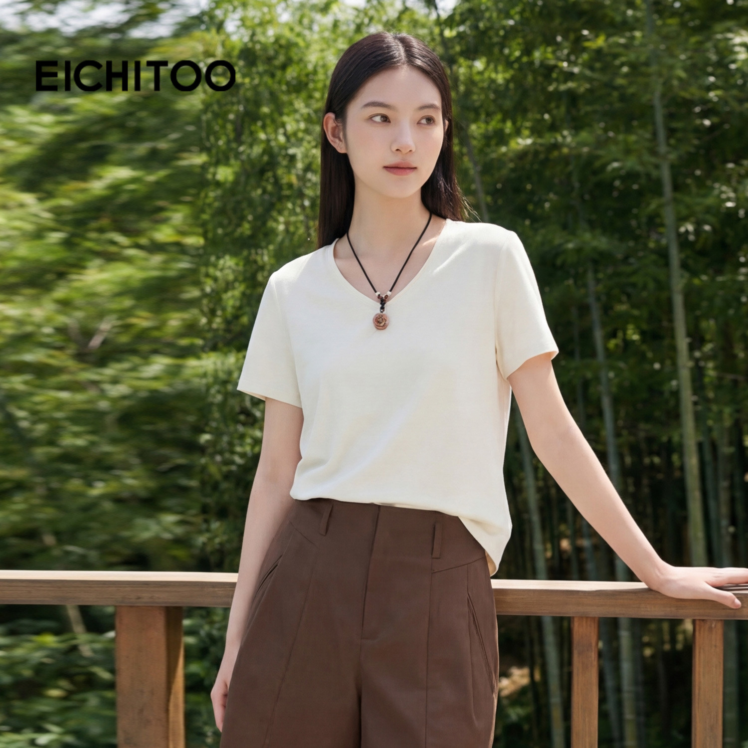 淘宝爱居兔舒适透气多色纯色简约T恤2026年夏季新款女V领短袖短上衣