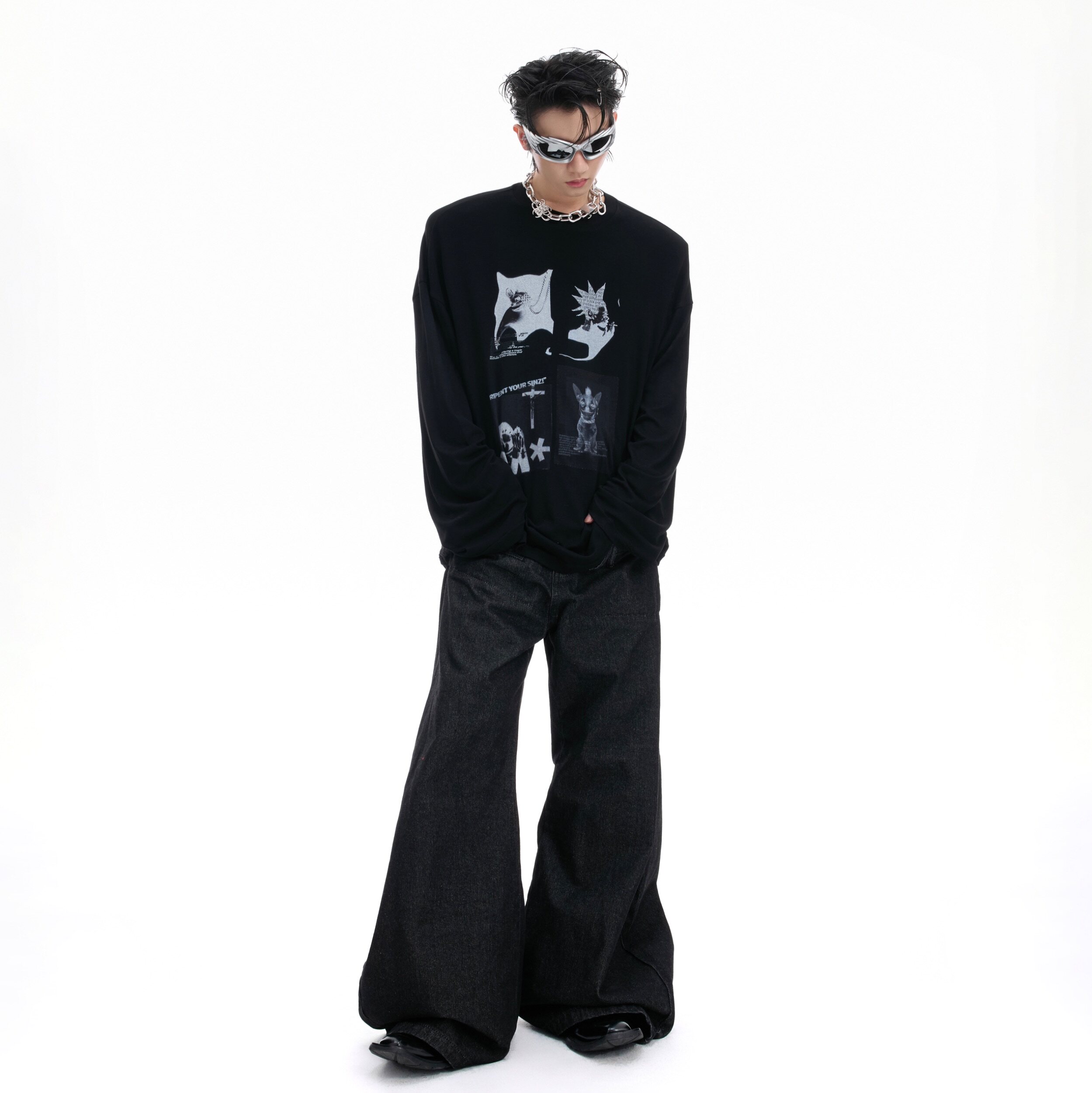 ArguE CulturE墨象*小众艺术图案休闲T恤宽松垂感舒适高弹长袖男
