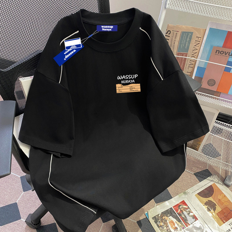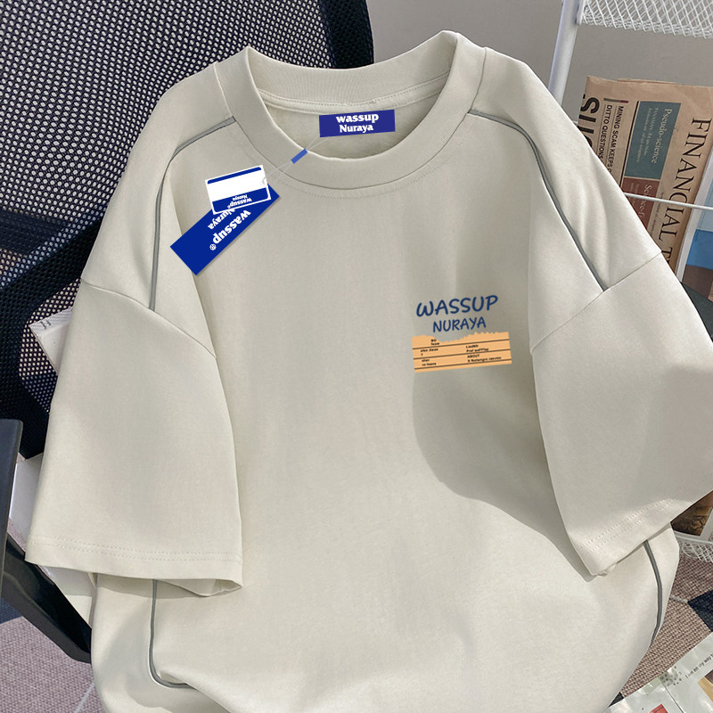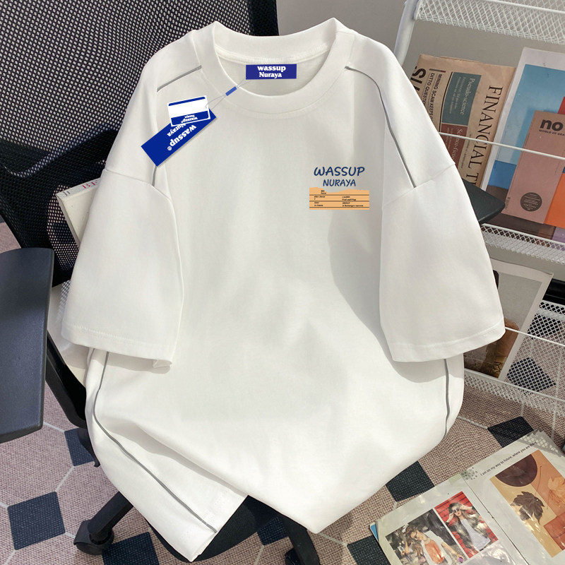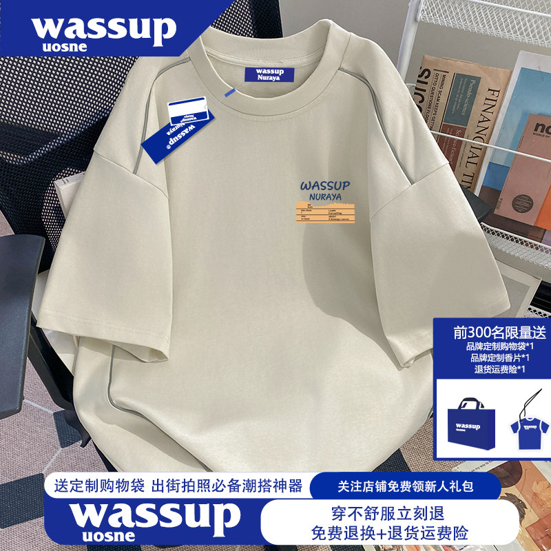 WASSUP美式高街潮牌青少年短袖t恤男女夏季重磅纯棉反光条上衣服
