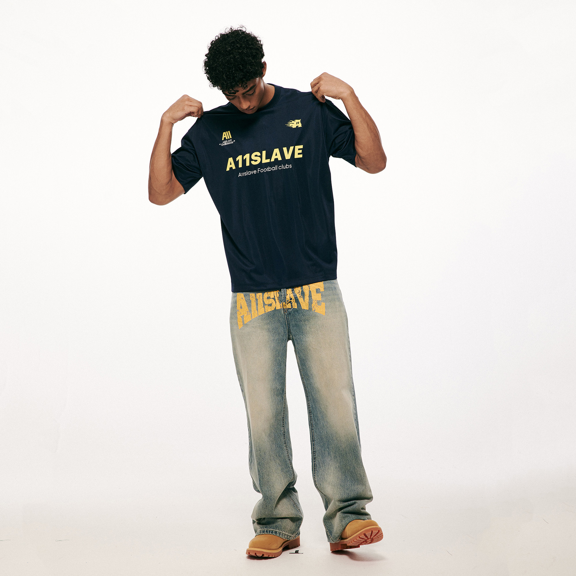 A11SLAVE暗纹球服短袖美式复古运动拼接休闲篮球嘻哈街头球衣T恤