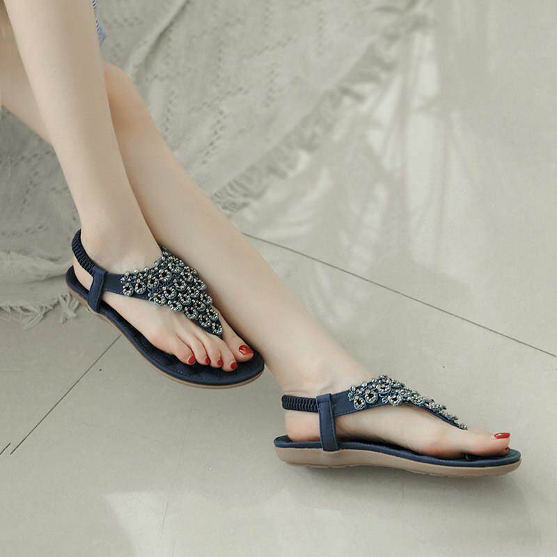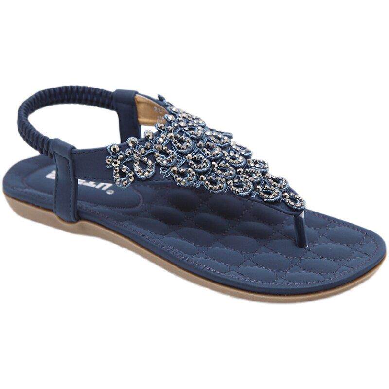 2025新款韩版头层牛皮夹趾凉鞋 网红波西米亚平底透气凉拖