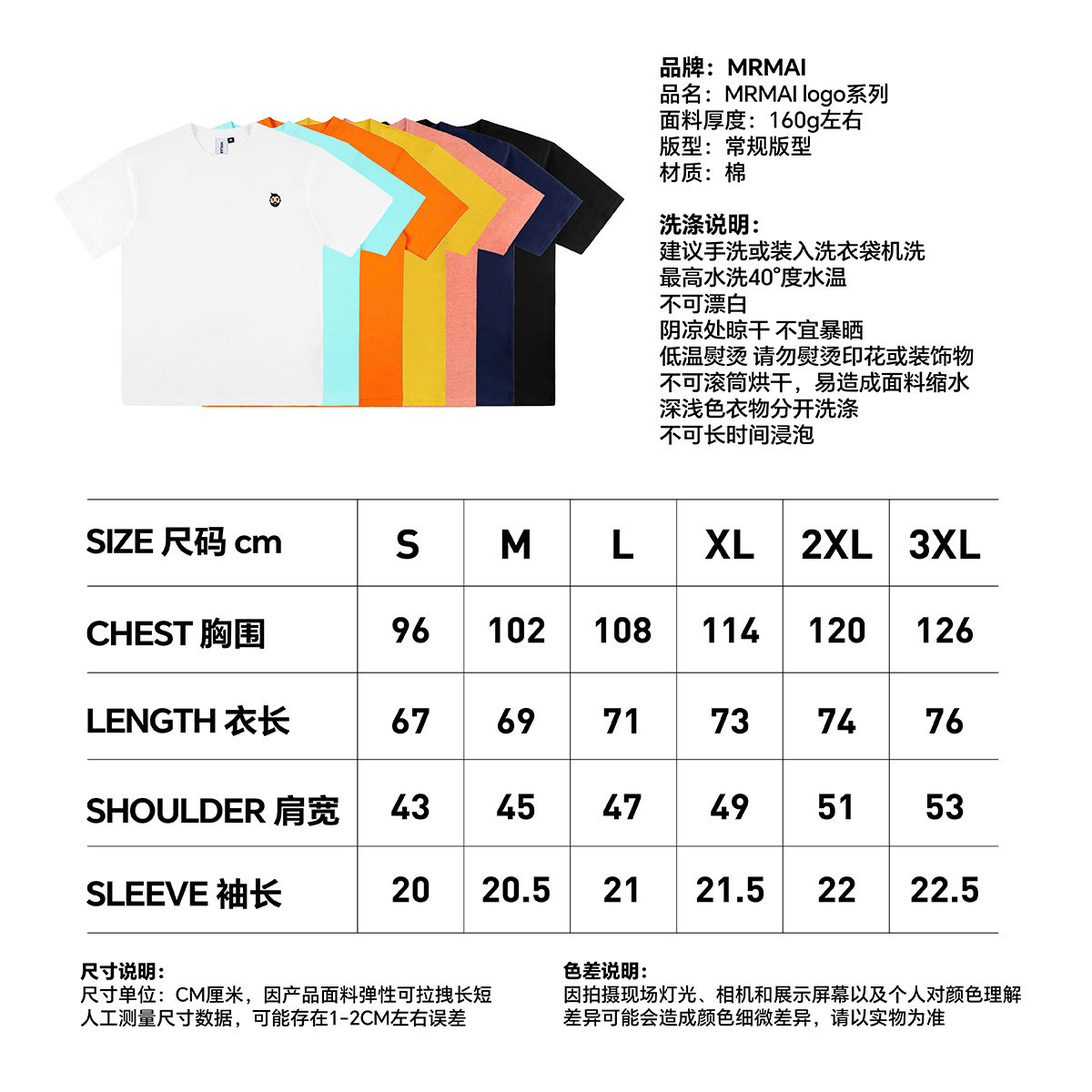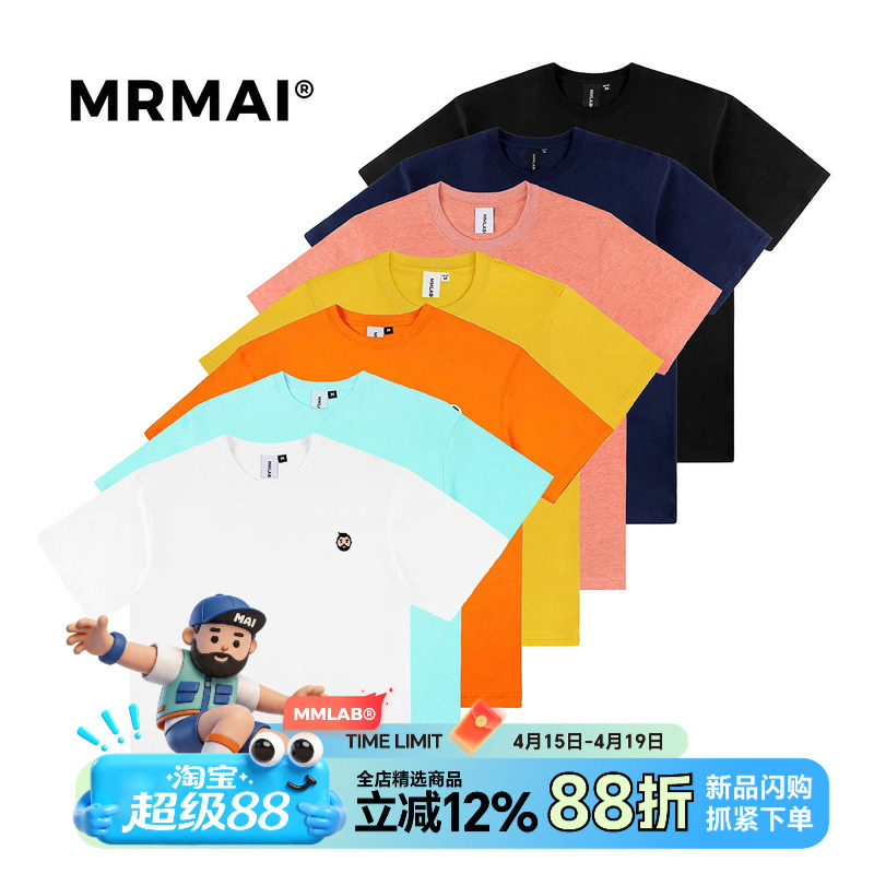 淘宝MMLABCREW MRMAI刺绣logo白黑浅蓝粉橘色简约百搭纯色纯棉短袖T恤