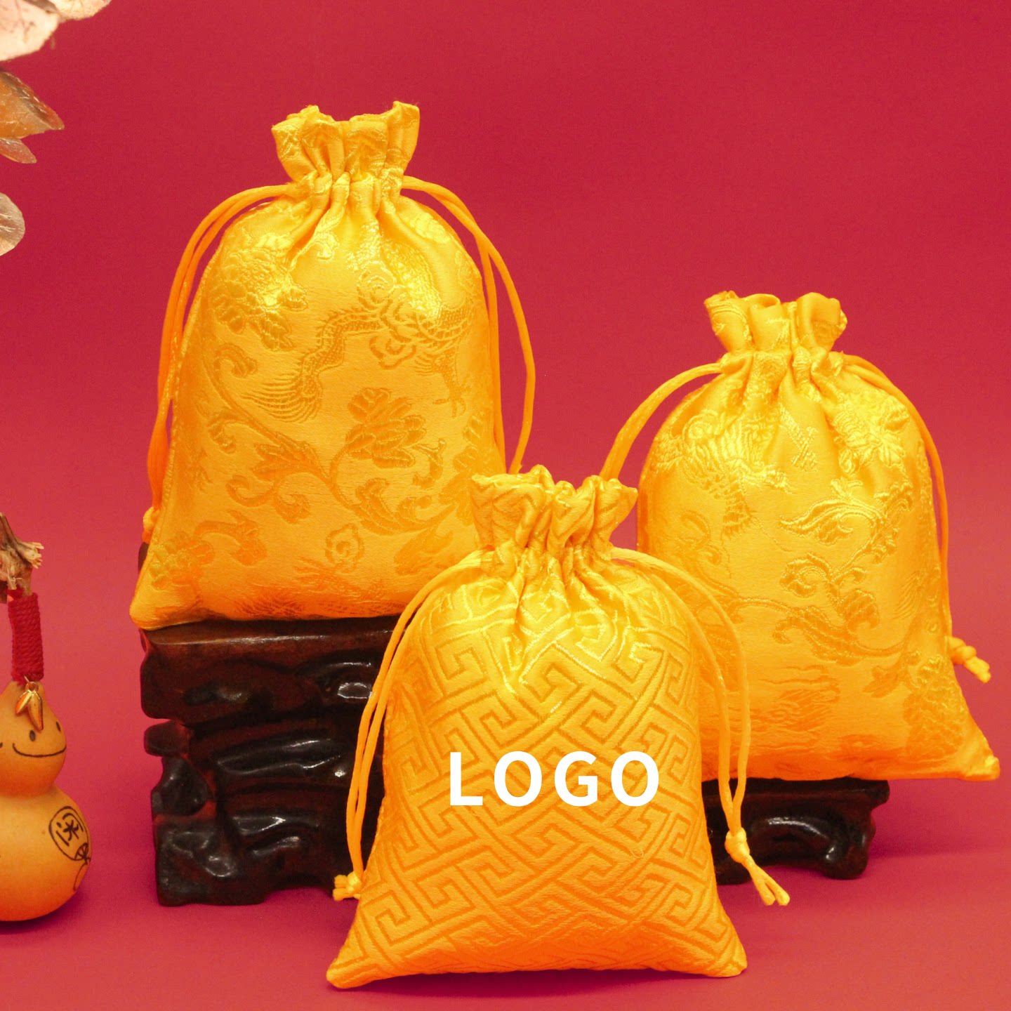 古风黄色织锦缎束口福袋可定制锦囊多规格喜糖包装收纳布袋大容量