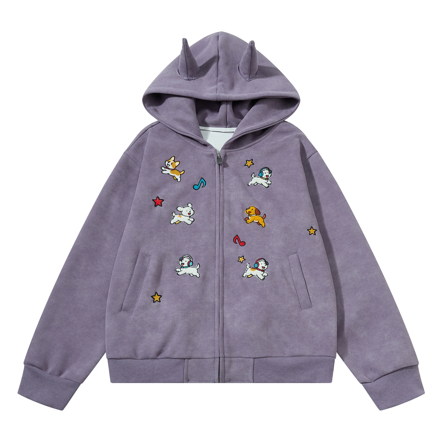 悟空有货美式小狗刺绣开衫连帽卫衣男女复古潮牌情侣百搭帽衫外套