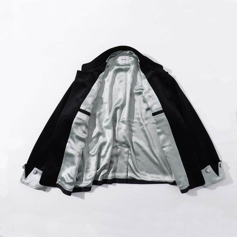MUSLUN缪伦设计师款2025春新款丝绒醋酸新中式男外套立领