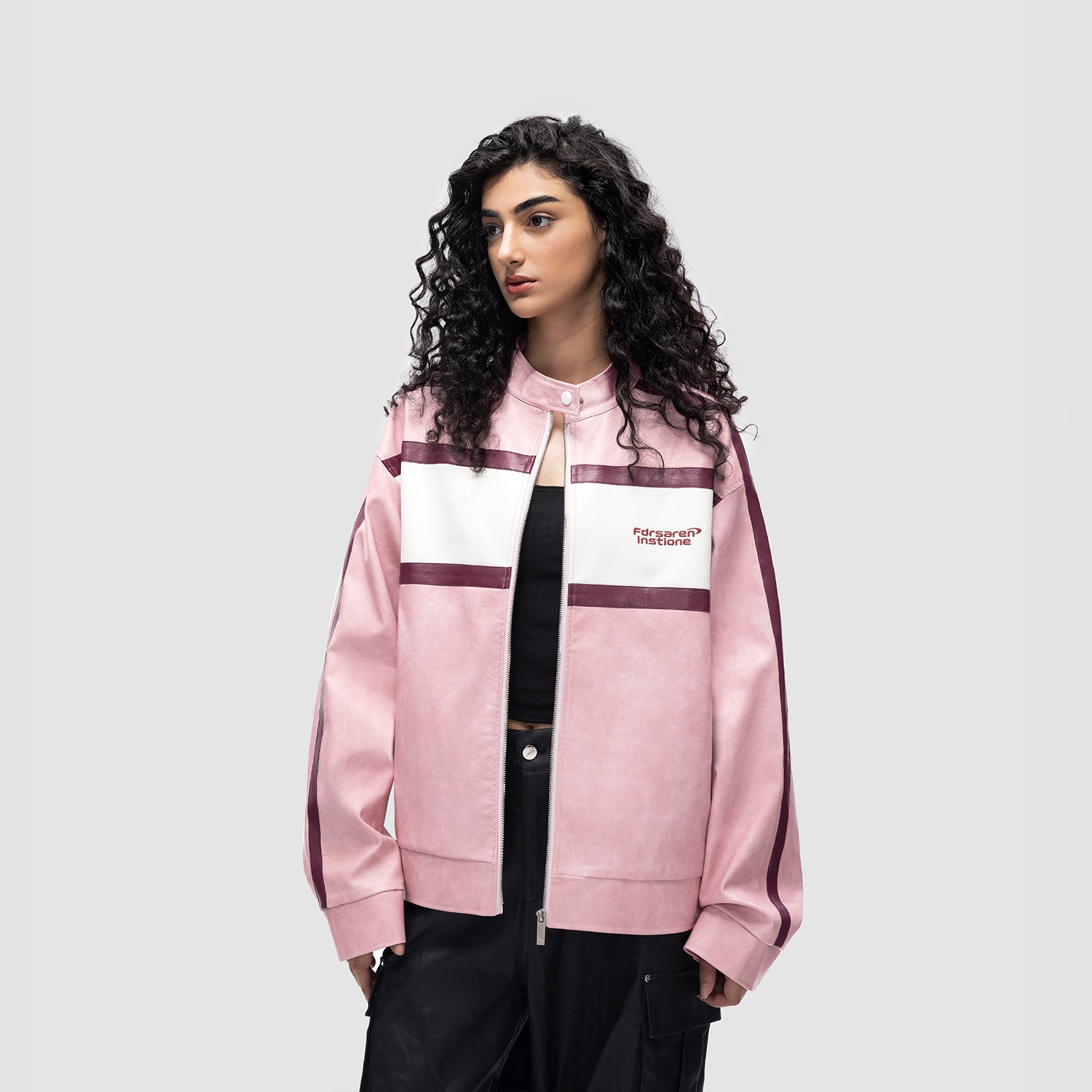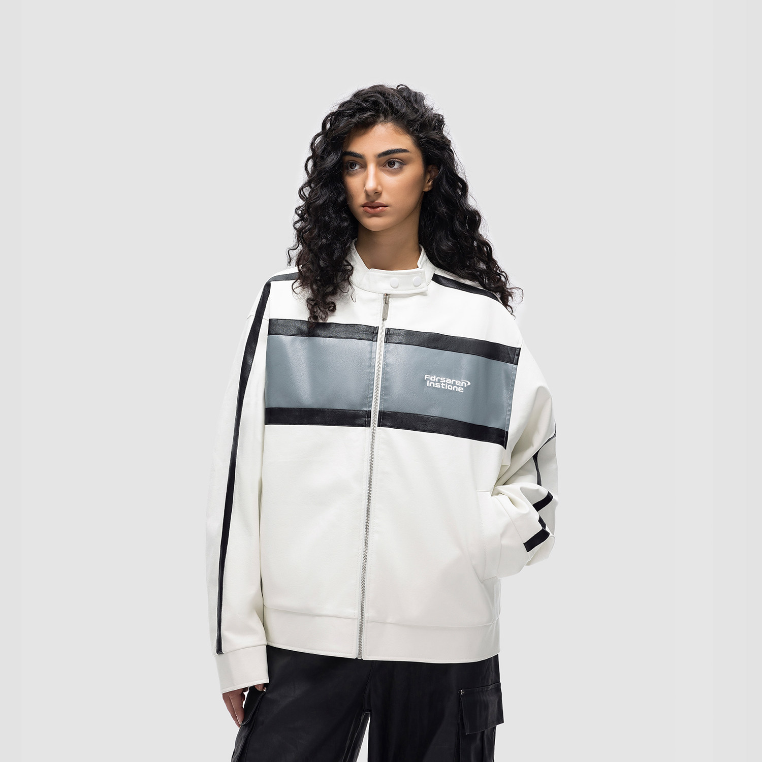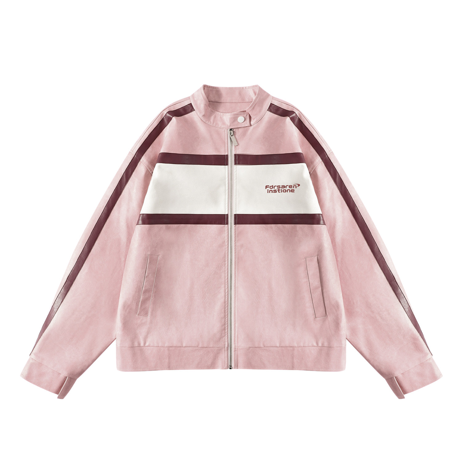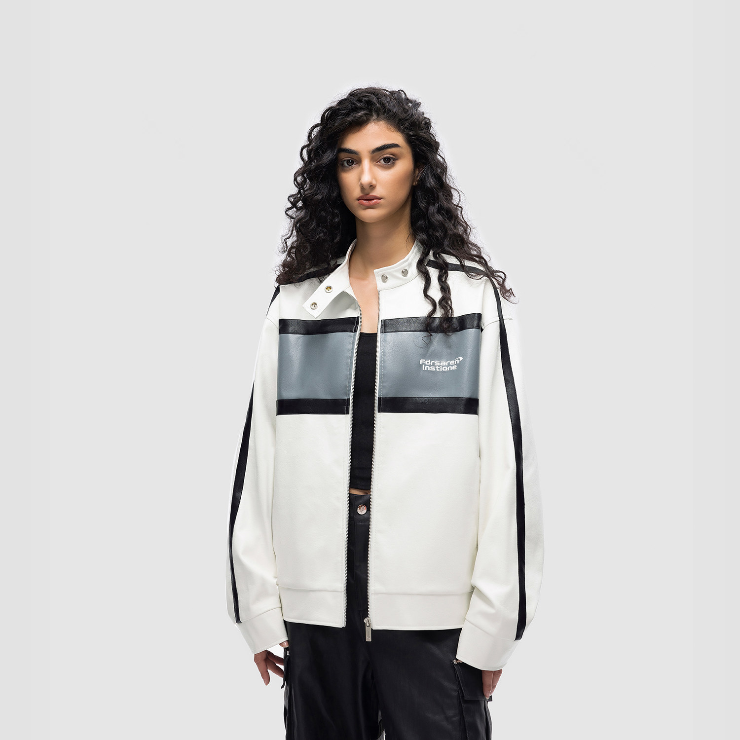 FDR官方店 国潮新款拼接撞色皮夹克女春季美式潮牌外套宽松上衣