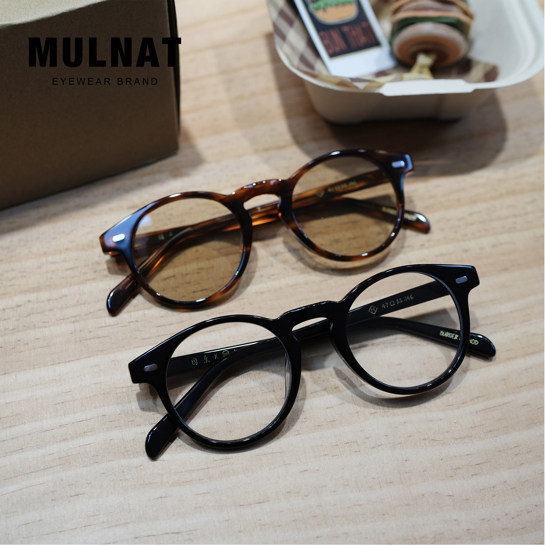 淘宝目奈MULNAT OPTICAL x Kei汉堡合作款手工复古BOSTON眼镜框架男女