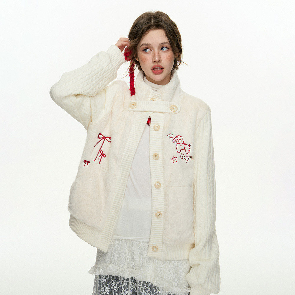 CyNi 甜美针织拼接兔毛外套上衣夹棉开 衫加绒加厚2024冬软糯温柔