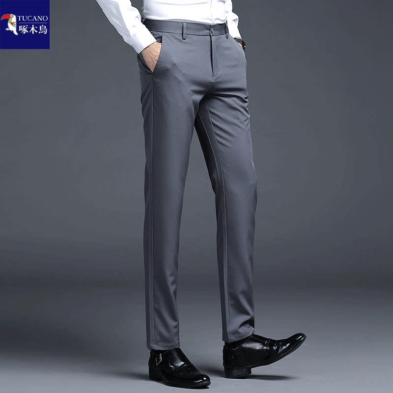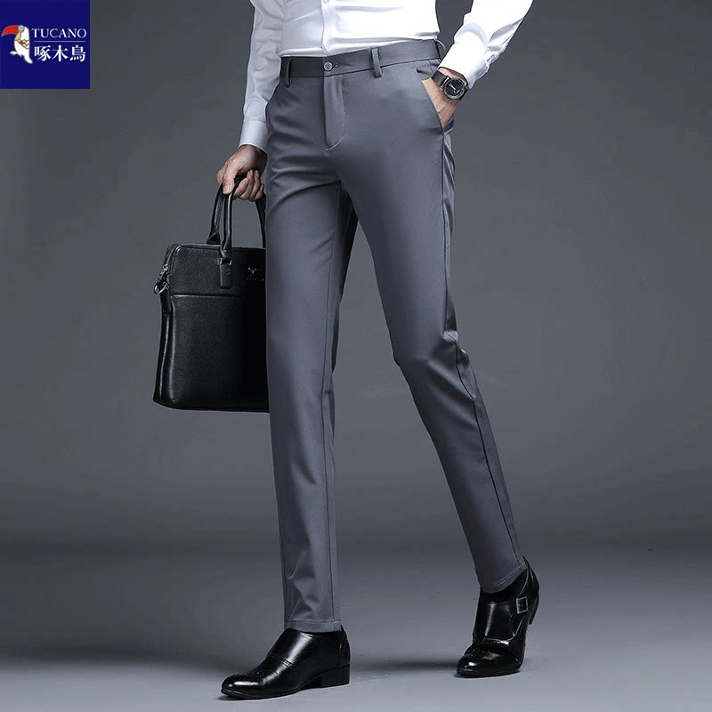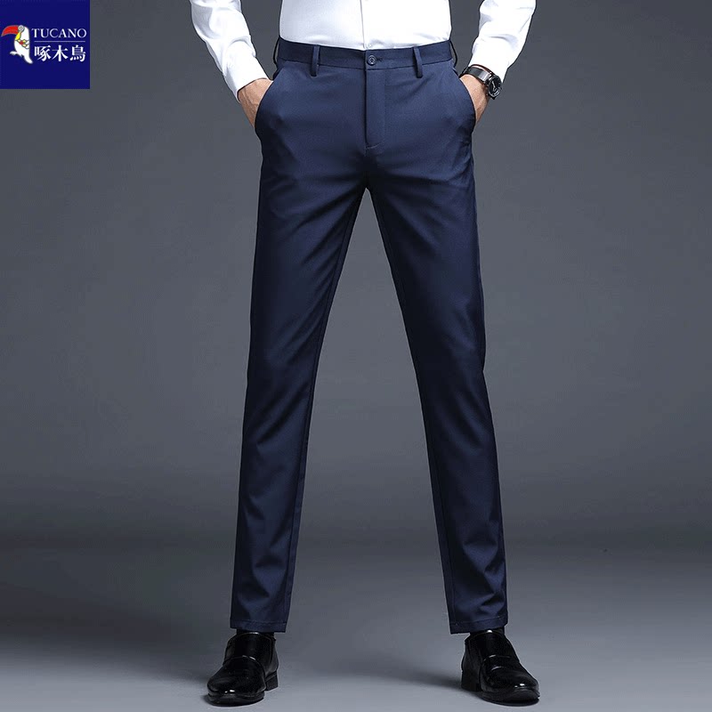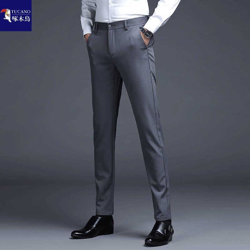 --------------------- 啄木鸟品牌男士西裤春秋厚款修身小脚男裤免烫抗皱弹力商务休闲裤 【原售价】188元 【现售价】121元 【推荐理由】