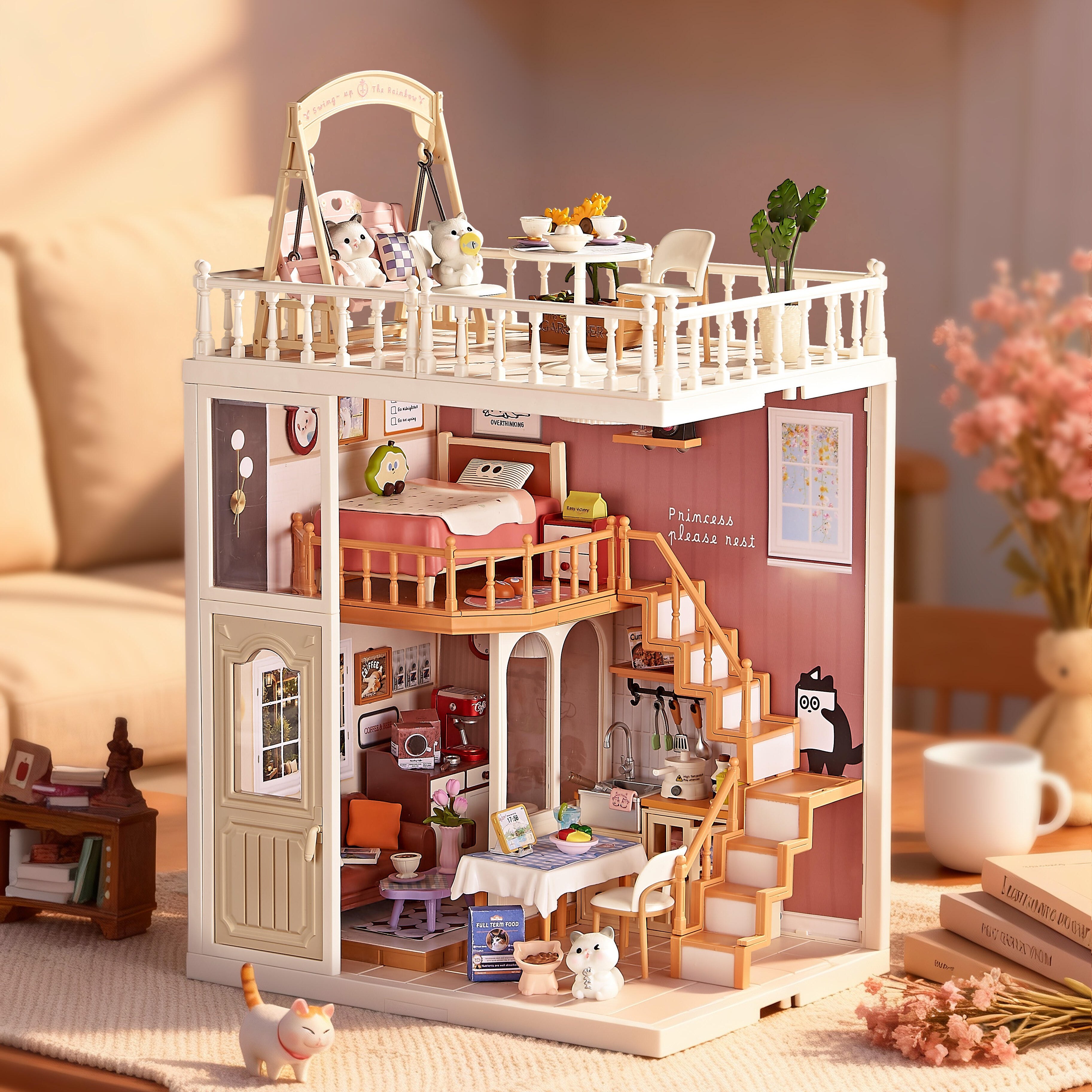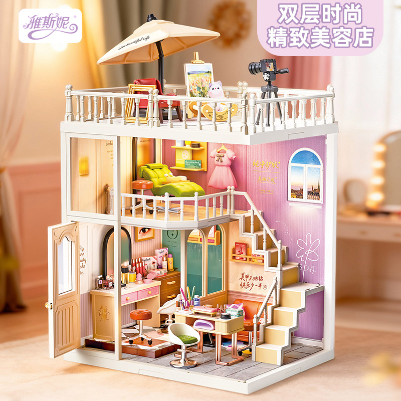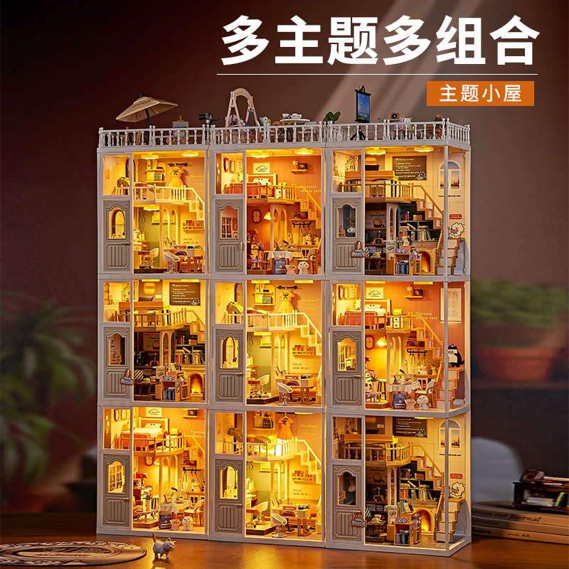 淘宝diy手工小屋拼装玩具女孩超级迷你世界微缩场景双层别墅公寓积木