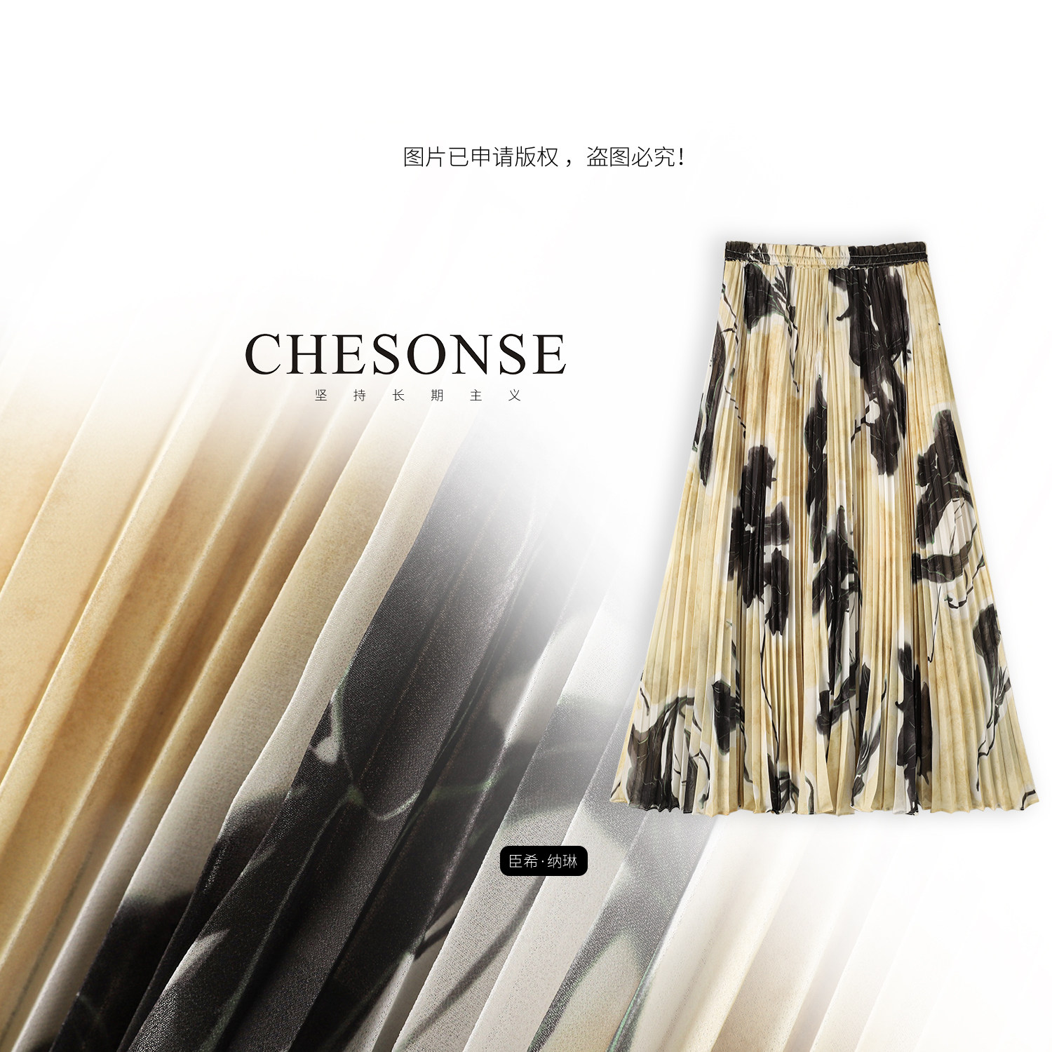 --------------------- CHESONSE【海盐秋柿】ED家 涂鸦风晕染印花百褶裙半身裙5043 【原售价】262元 【现售价】230元 【推荐理由】