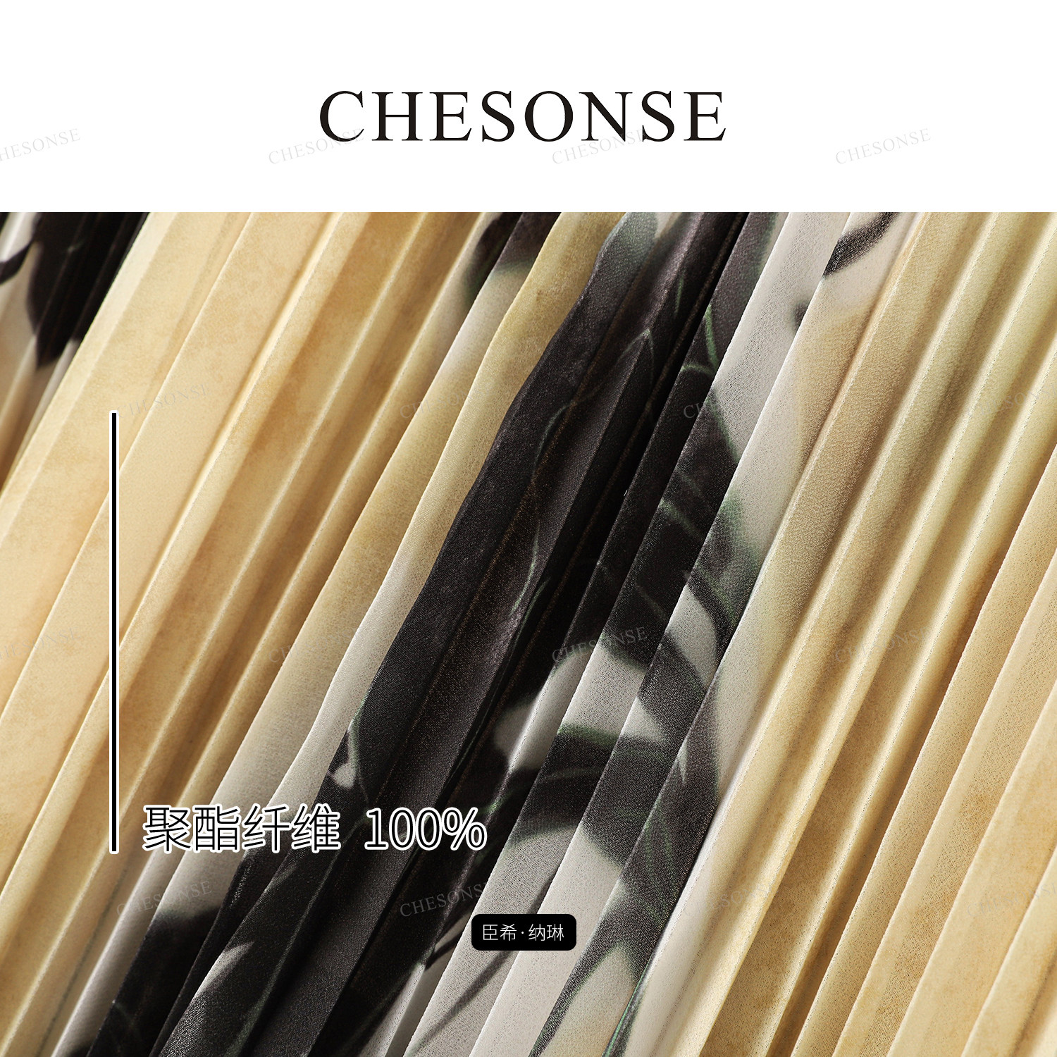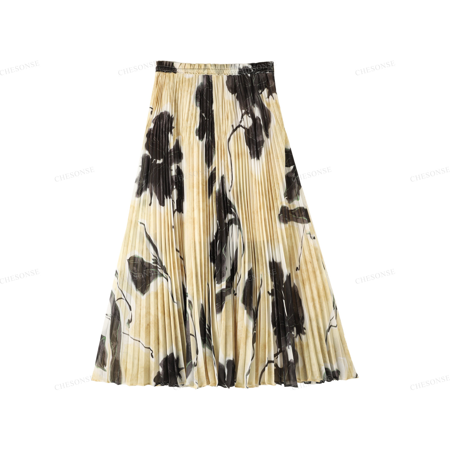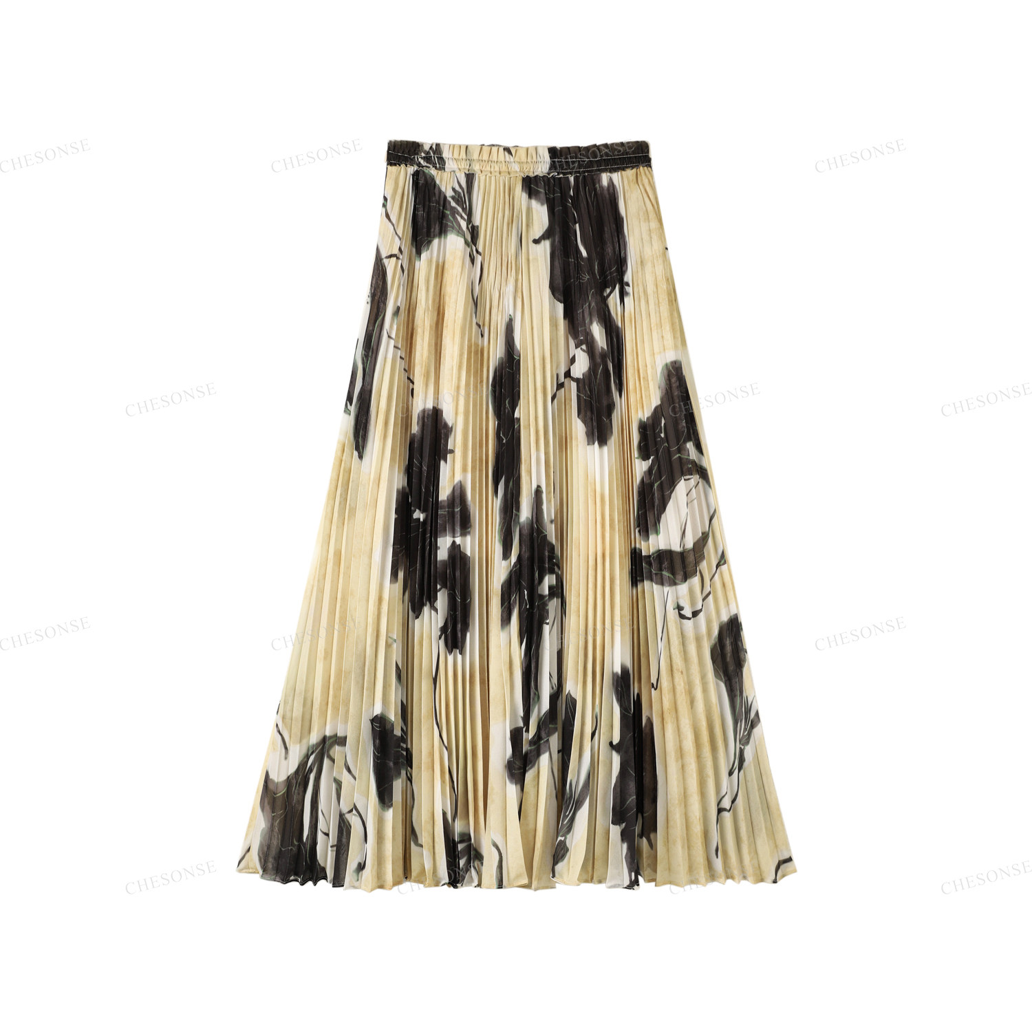 CHESONSE【海盐秋柿】ED家 涂鸦风晕染印花百褶裙半身裙5043
