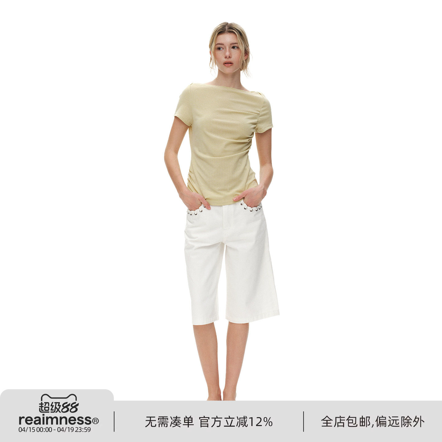 --------------------- ReAimNess*船领褶皱条纹T恤 【原售价】199元 【现售价】175元 【推荐理由】
