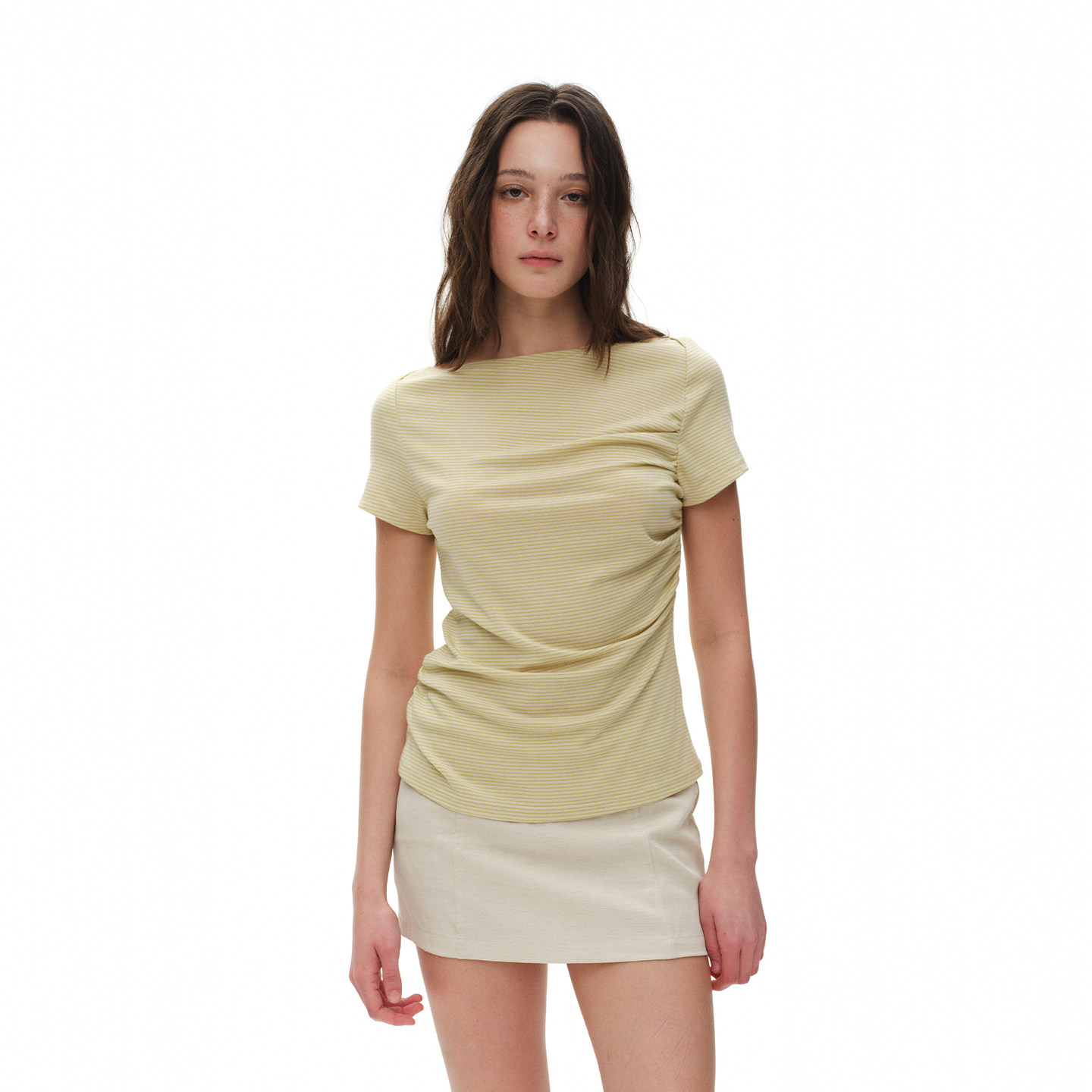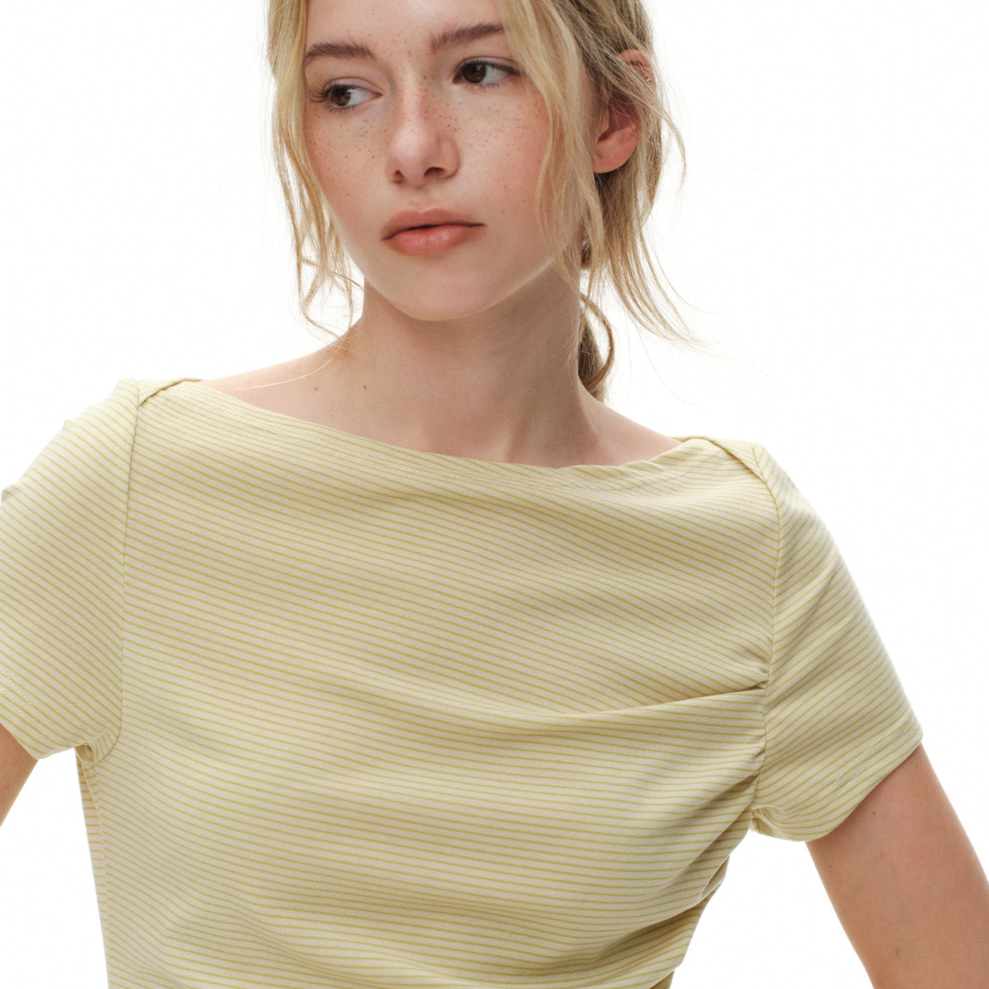 ReAimNess*船领褶皱条纹T恤