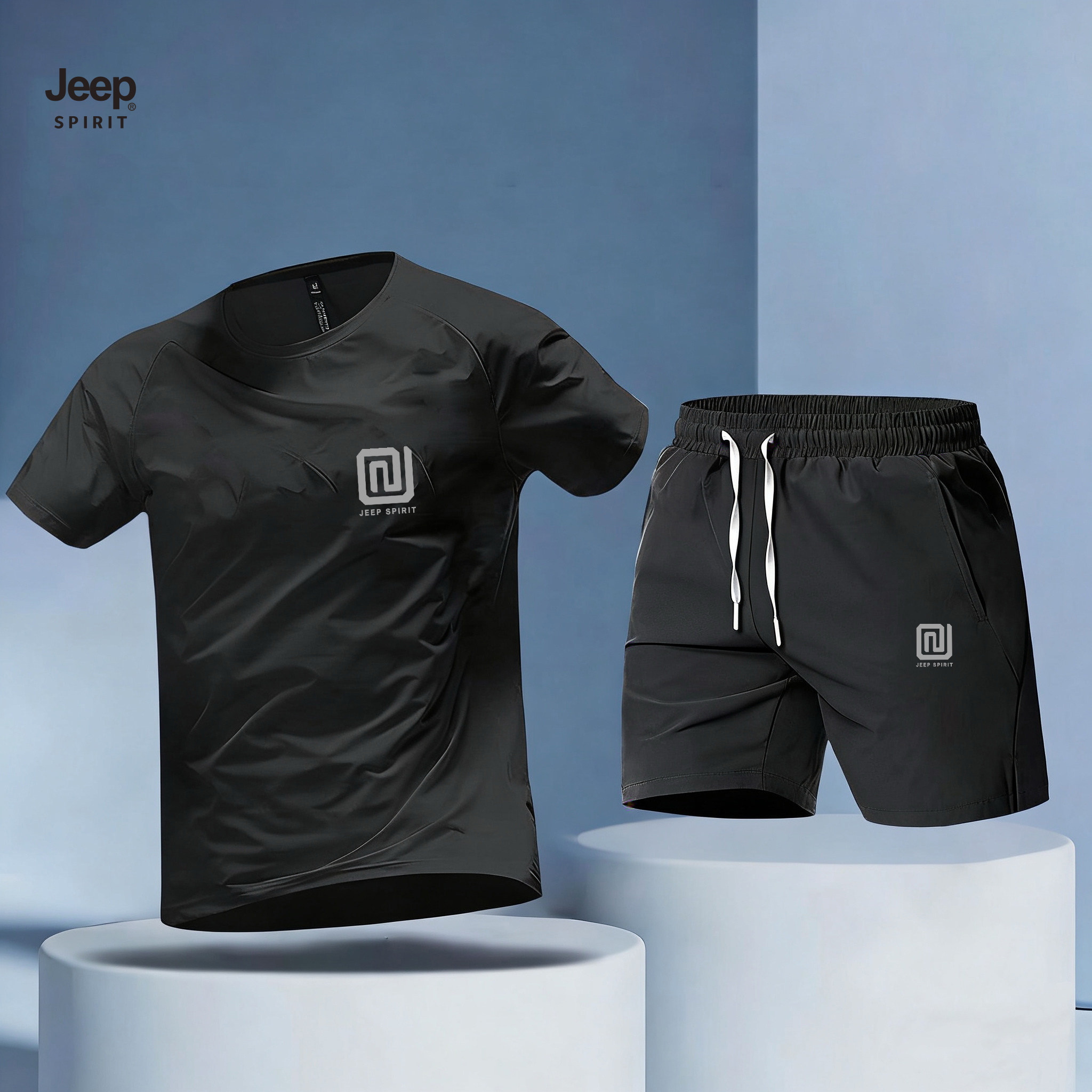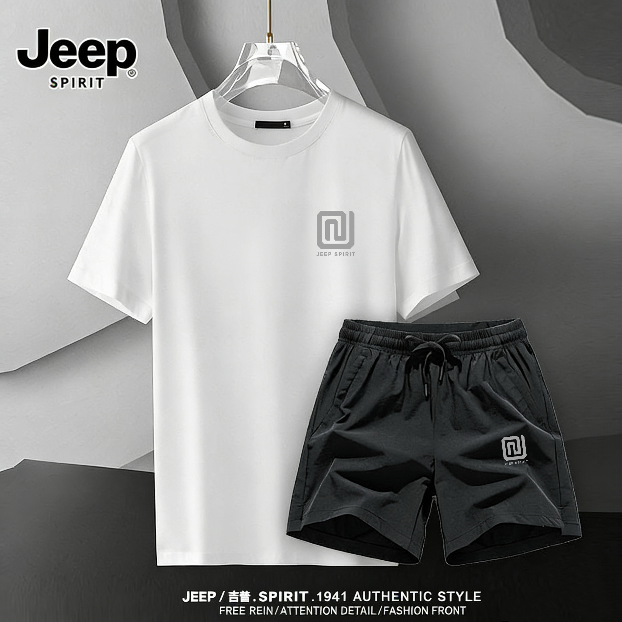 淘宝JEEP吉普运动套装男夏2026新款速干短裤男款防晒冰丝宽松男女t恤