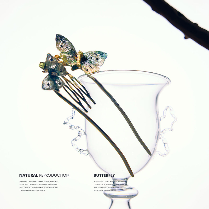 shes茜子自然复刻轻奢原创刺绣蝴蝶发簪U型盘发古风簪子国潮发饰
