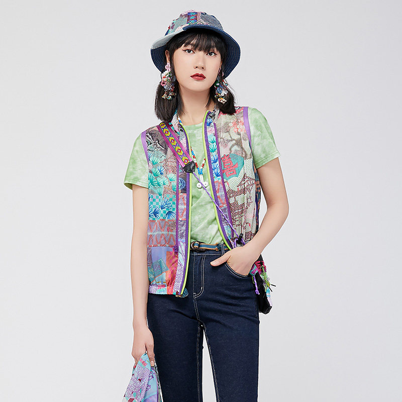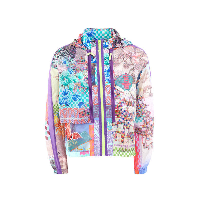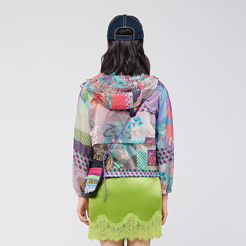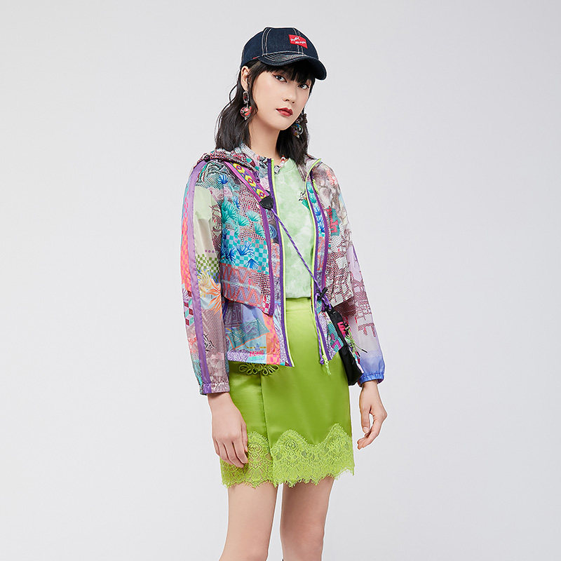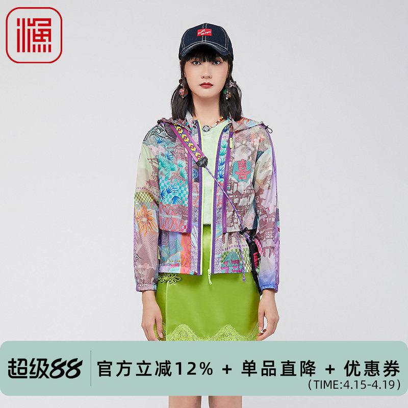 淘宝渔短外套女2024新款高端外春夏国潮印花连帽休闲风衣外套FGGB3032
