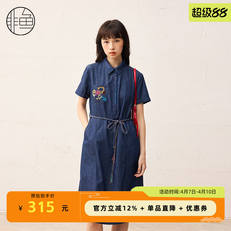 --------------------- 非鱼25春季文艺复古牛仔连衣裙新款绣花中长款女裙子系带显瘦裙 --------------------- --------------------- 【原价】1498元 【券后价】314元