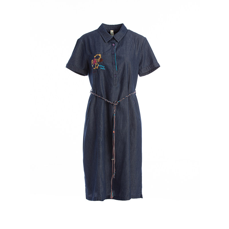非鱼25春季文艺复古牛仔连衣裙新款绣花中长款女裙子系带显瘦裙