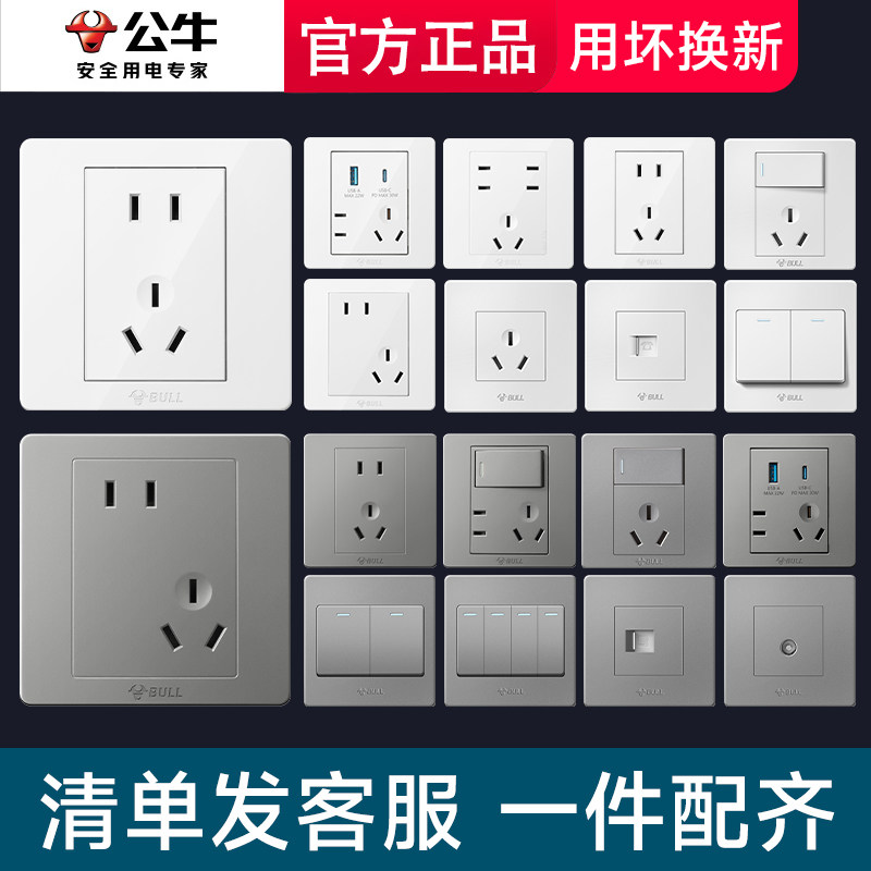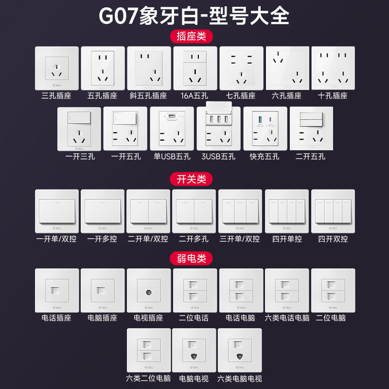 公牛开关插座面板官方旗舰店正品家用五孔墙壁墙上暗装g07象牙白