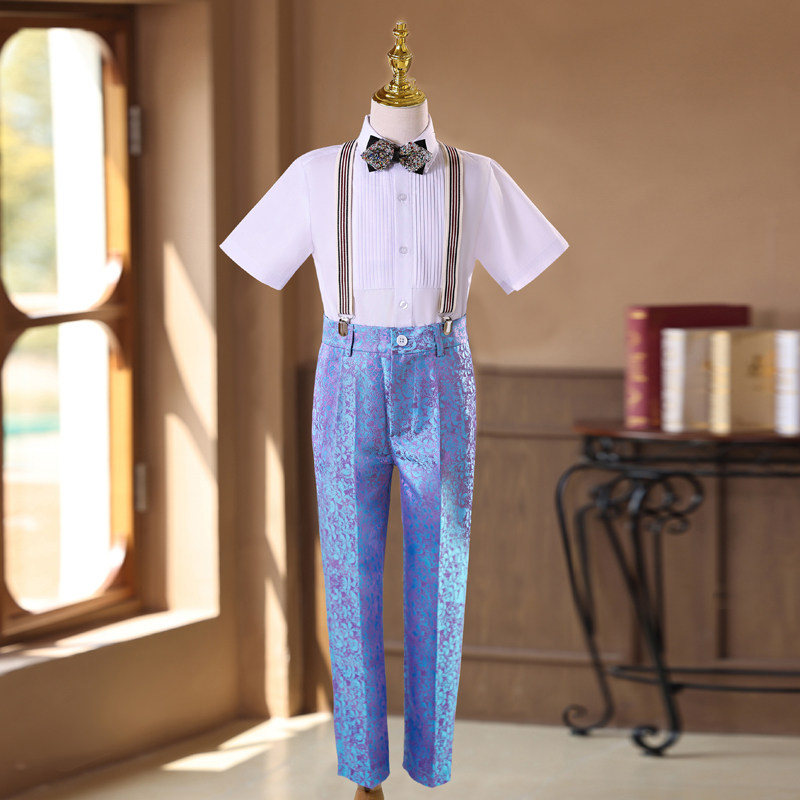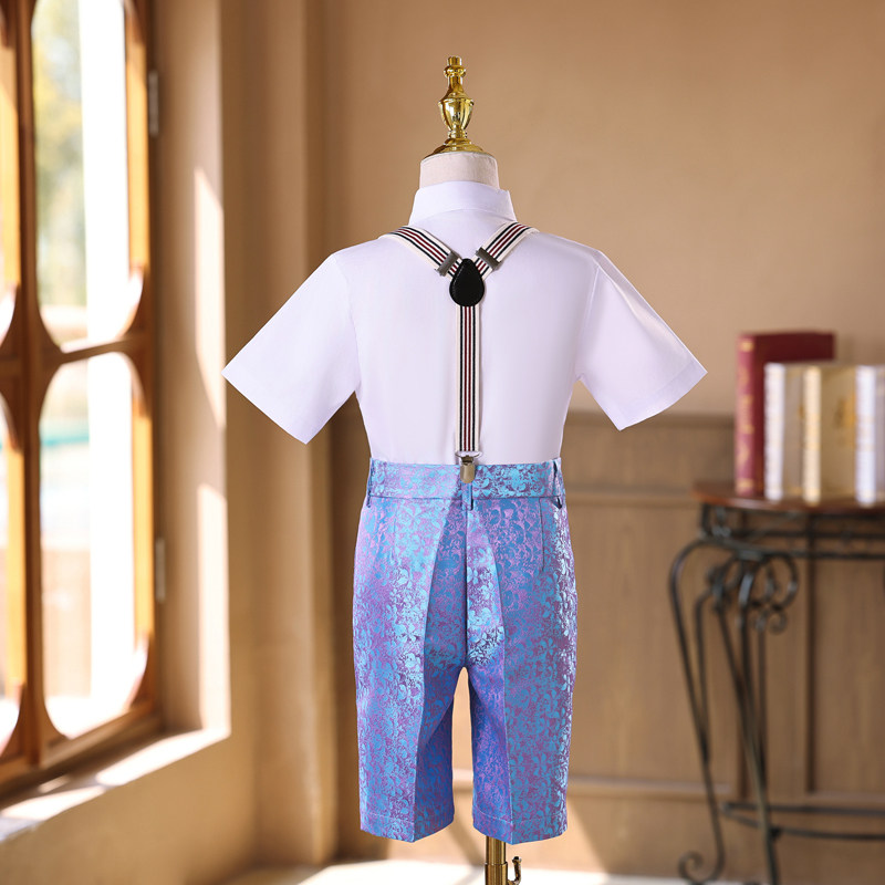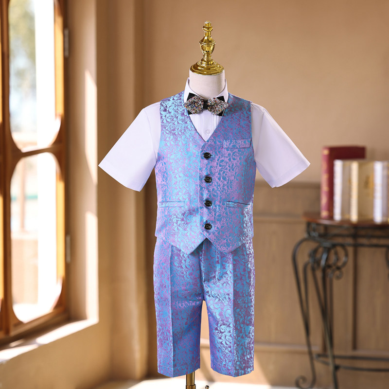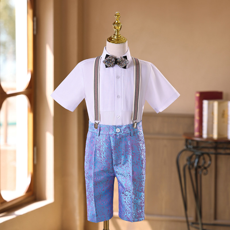 男童主持人礼服高级感夏短袖花童生日礼服男童朗诵比赛钢琴演出服