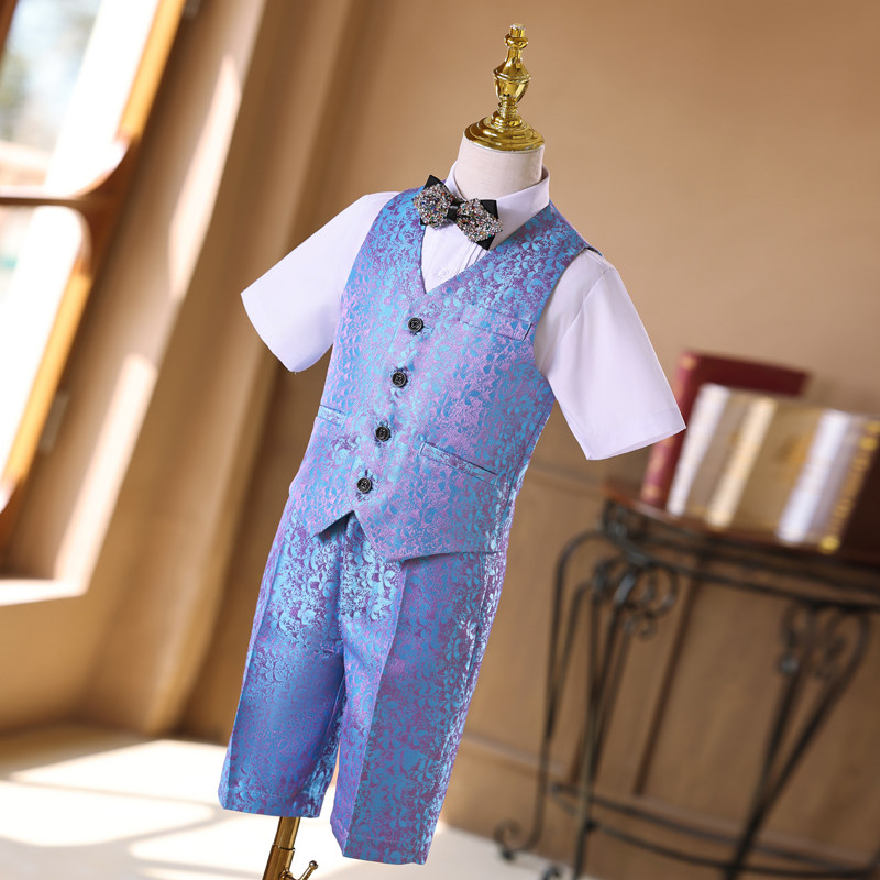--------------------- 男童主持人礼服高级感夏短袖花童生日礼服男童朗诵比赛钢琴演出服 【原售价】399元 【现售价】238元 【推荐理由】
