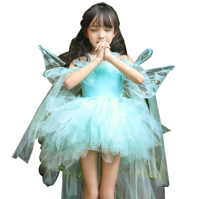 女童精灵装带蝴蝶翅膀万圣节COS蝴蝶仙子裙摄影纱质蓬蓬裙公主裙