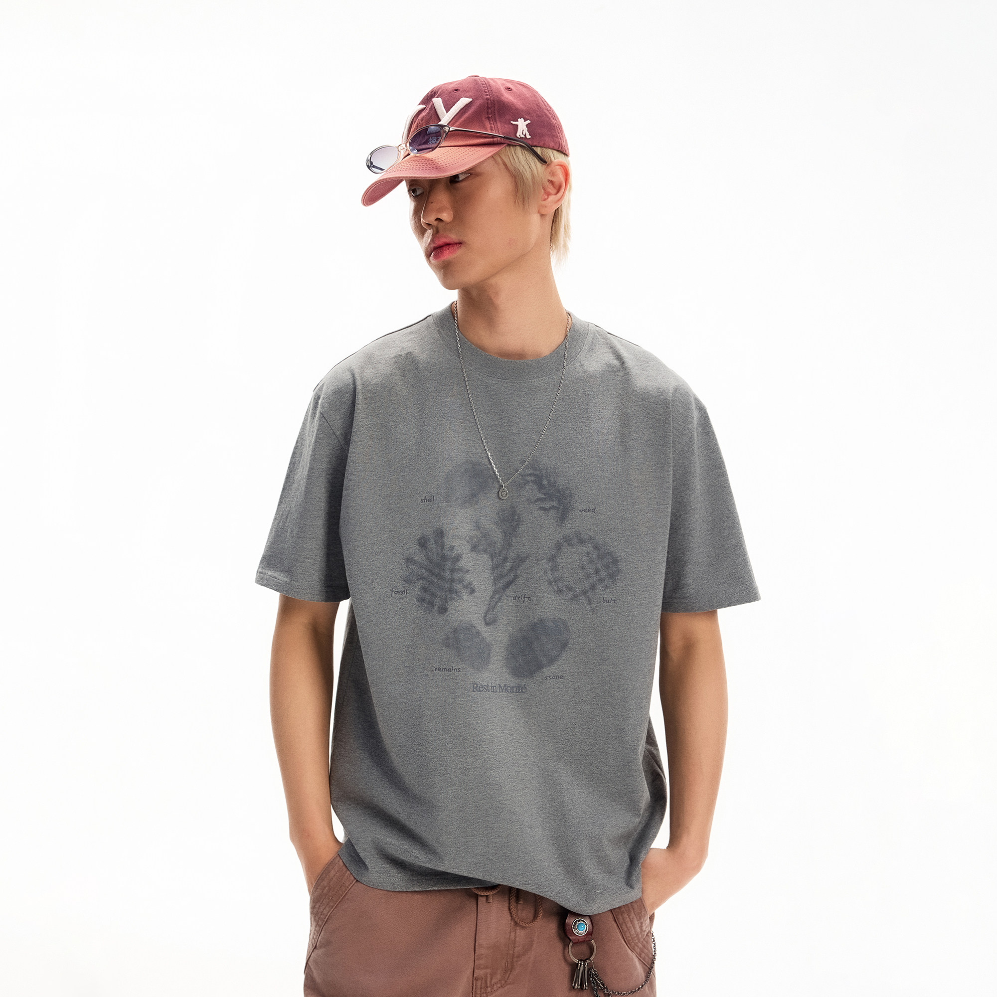 瞬时山野Monterest户外花纱肌理5A抗菌空钓日志印花宽松短袖T恤男