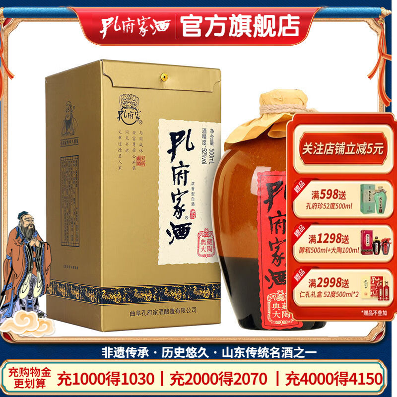 --------------------- 孔府家酒52度典藏大陶酒 500ml*2瓶 6瓶东特产浓香型白酒孔府经典 【原售价】1399元 【现售价】69元 【推荐理由】