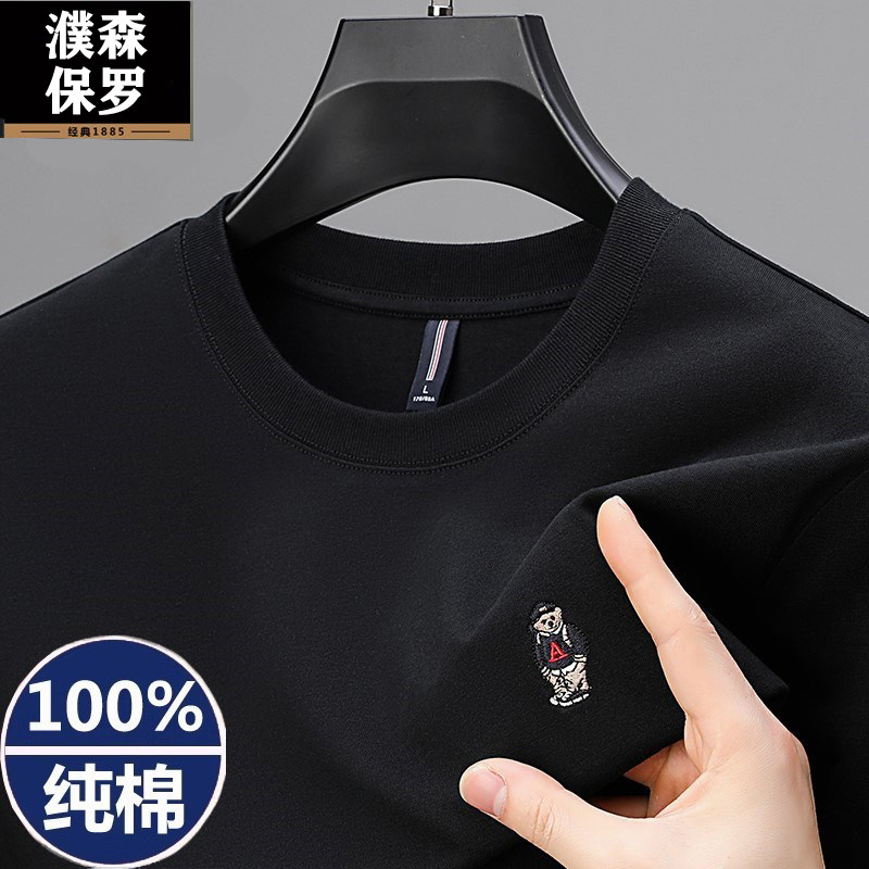 --------------------- 濮森保罗100%全棉重磅短袖t恤男士高端品牌刺绣圆领纯棉夏装体恤 【原售价】118元 【现售价】65元 【推荐理由】
