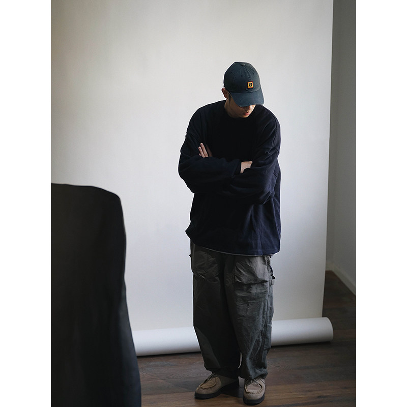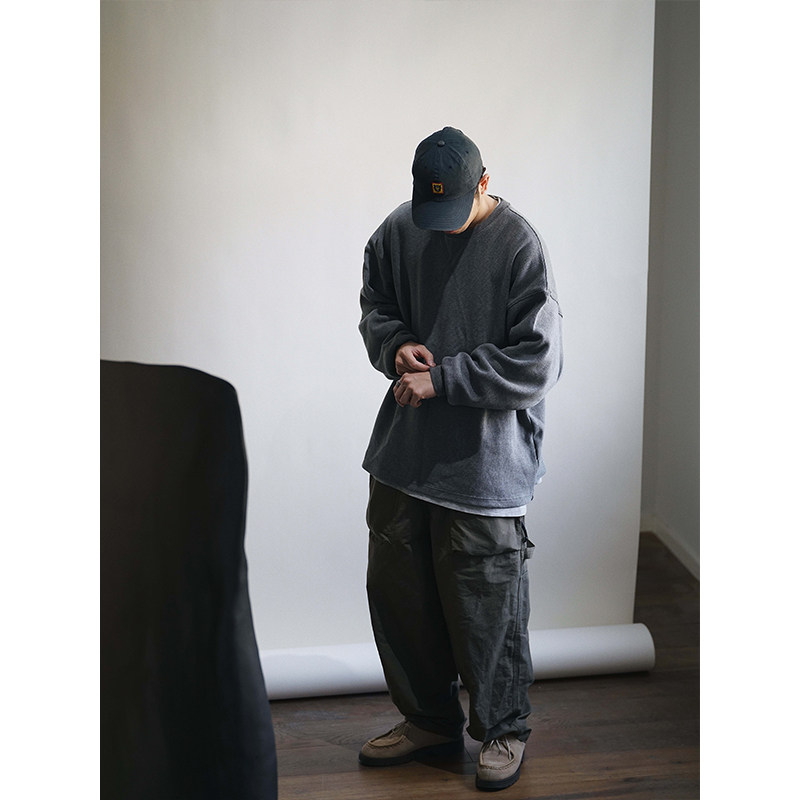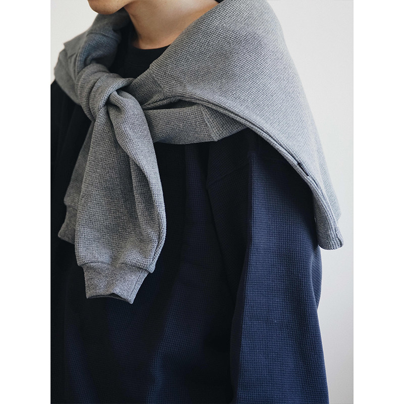 Gnomes lab 22SS 重磅460g华夫格纯色圆领套头长袖 日系复古国潮