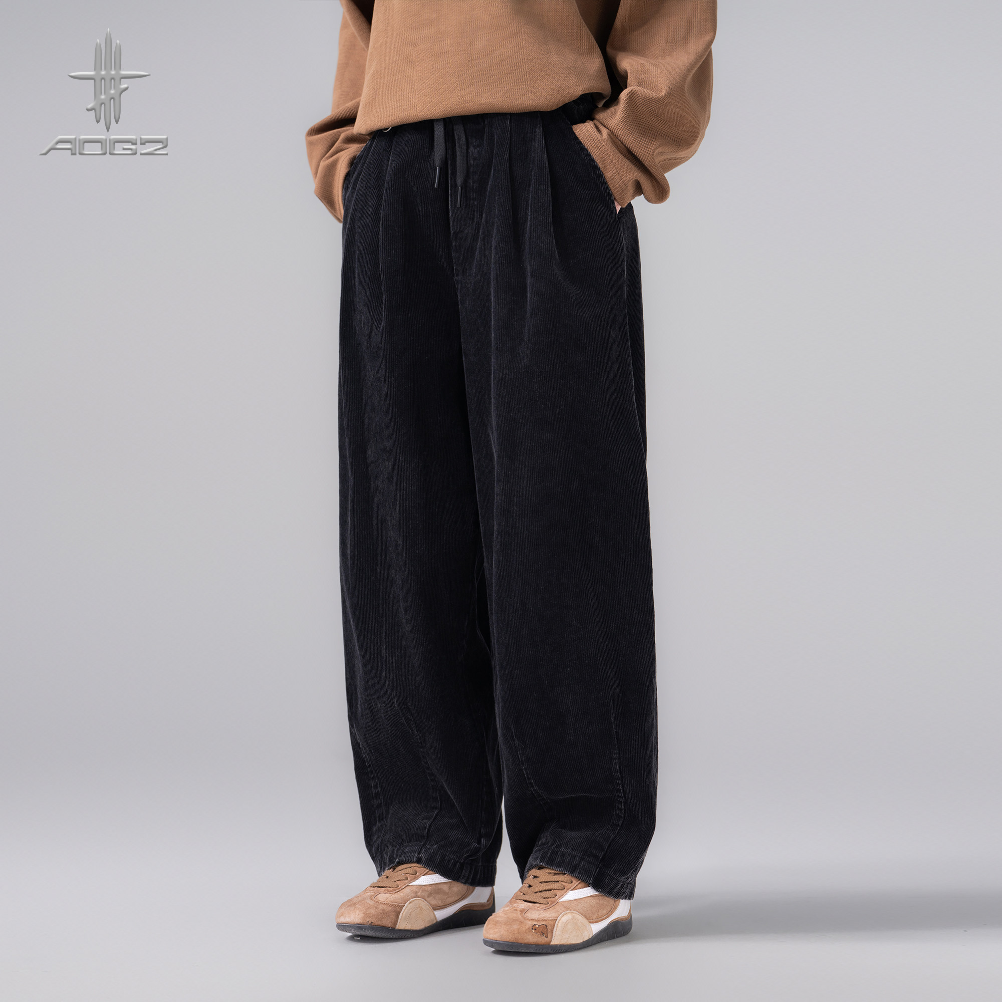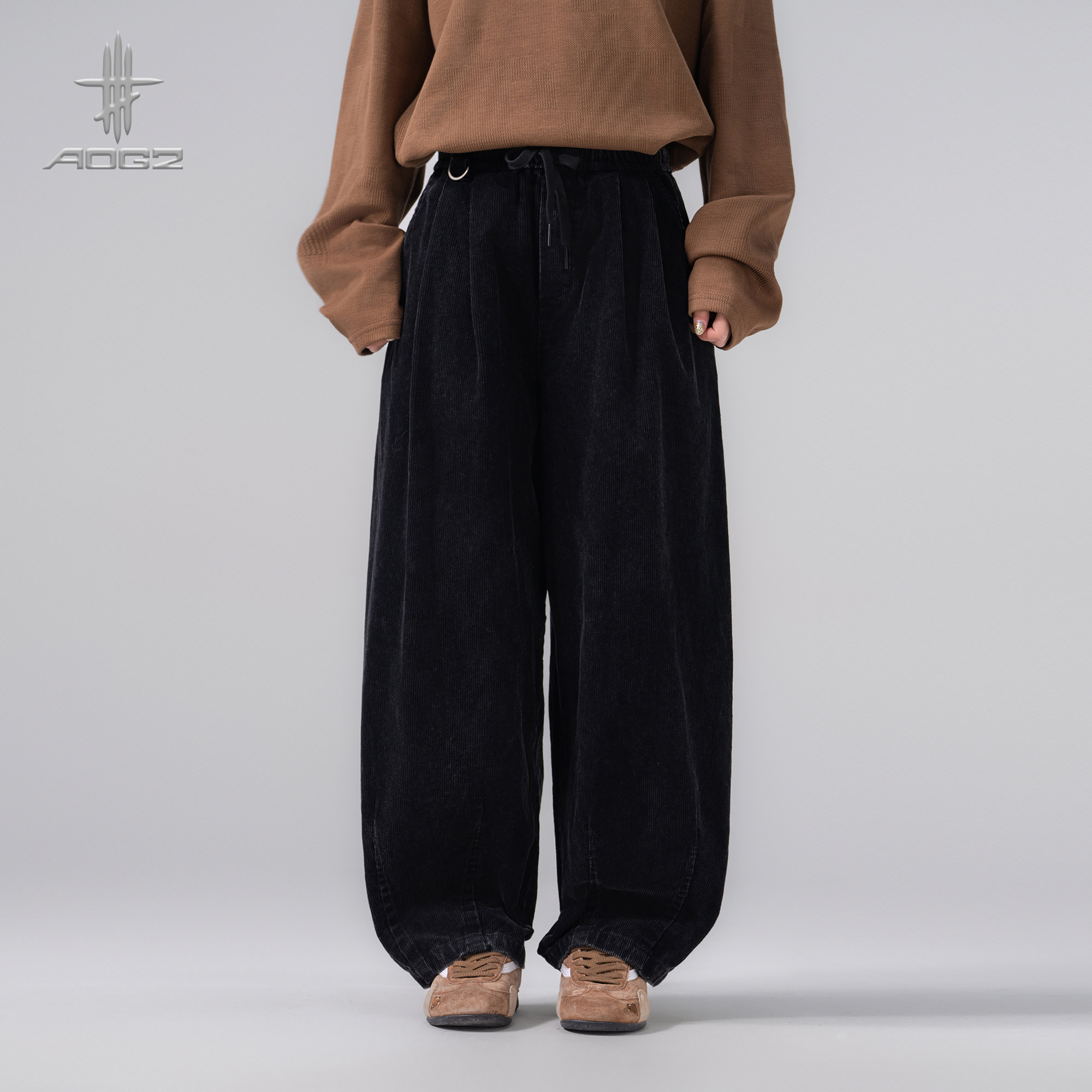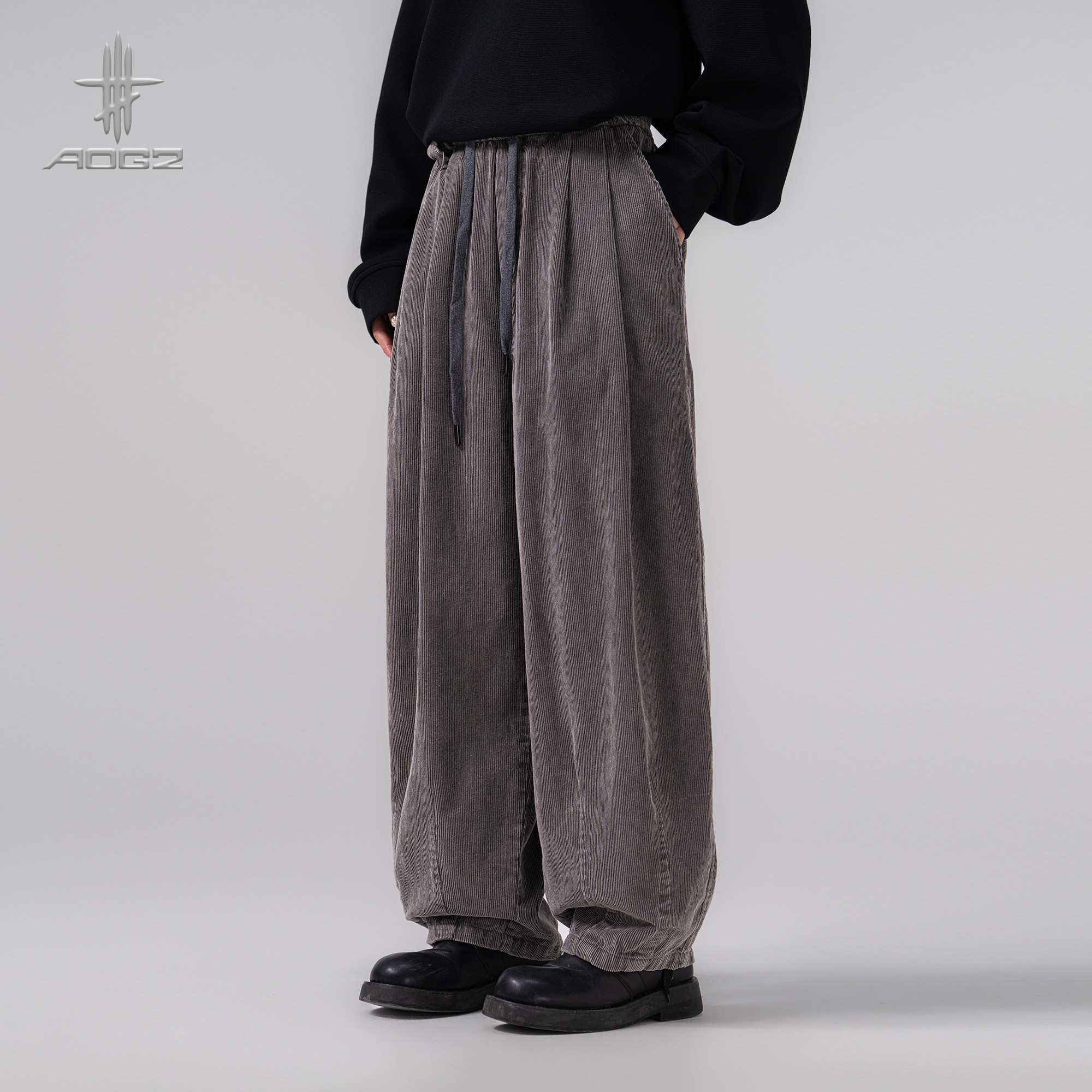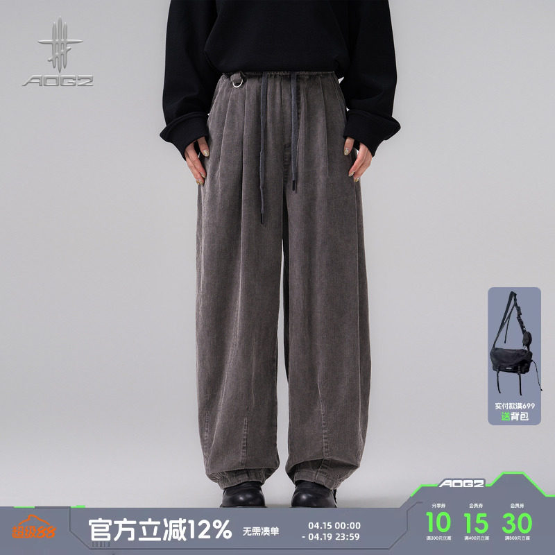AOGZ美式复古灯芯绒阔腿裤男女2026春季新款休闲垂感直筒弯刀长裤